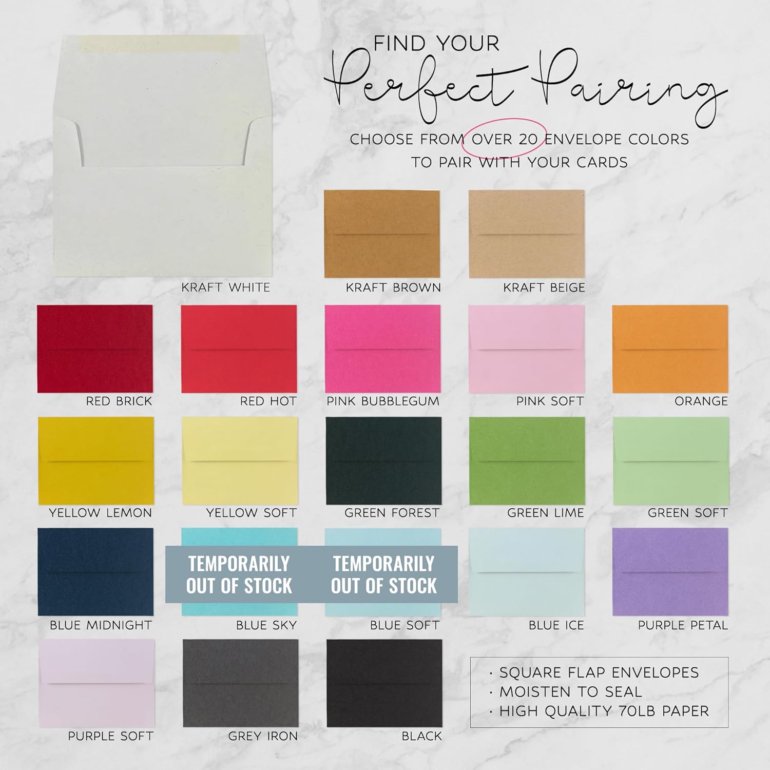 - PERFECT SIZE - Each card measures 4.25" x 5.5" — the ideal size for heartfelt thank you notes, short messages, or personalized correspondence. A classic format that fits perfectly in standard A2 envelopes and is mailable in the US with a single stamp.