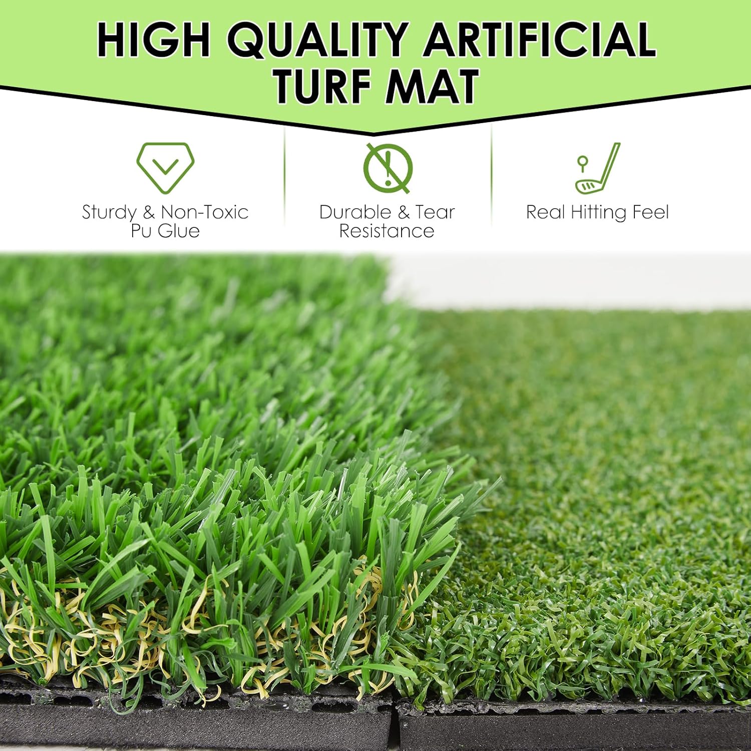 - 【Realistic Turf & Stable Base】High-quality simulated grass provides a soft, realistic feel similar to real fairways and rough. Includes a golf tee slot to protect the mat from repeated hits. Anti-slip rubber base ensures stability and prevents sliding during practice.