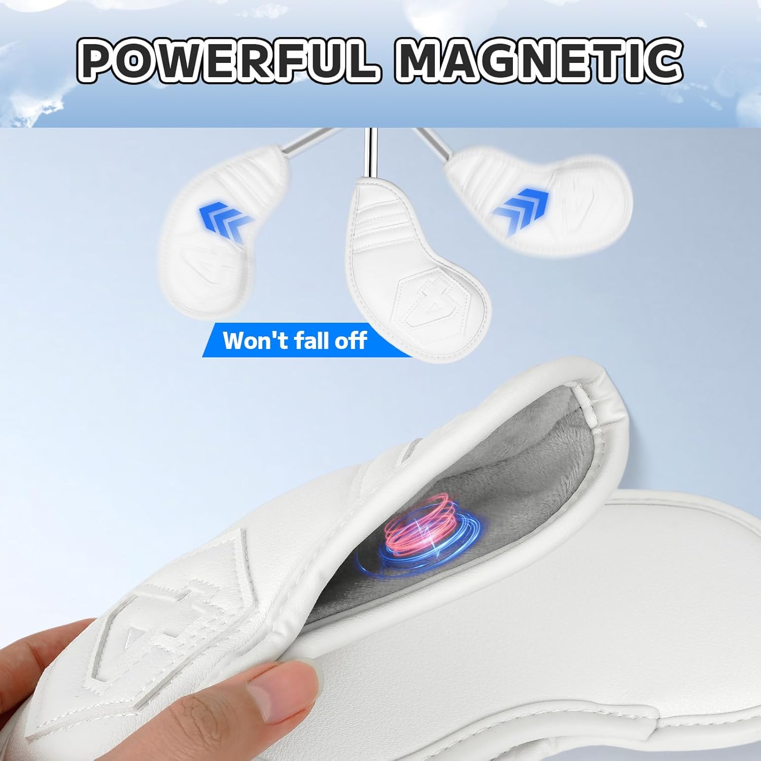 Magnetic Golf Iron Covers Set 10 Pcs Golf Iron Headcovers PU Leather Easy Off/On Protective Cover