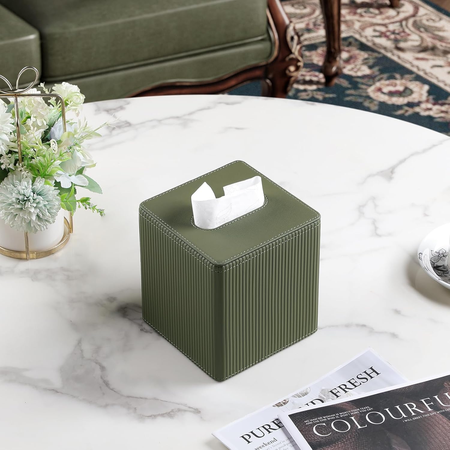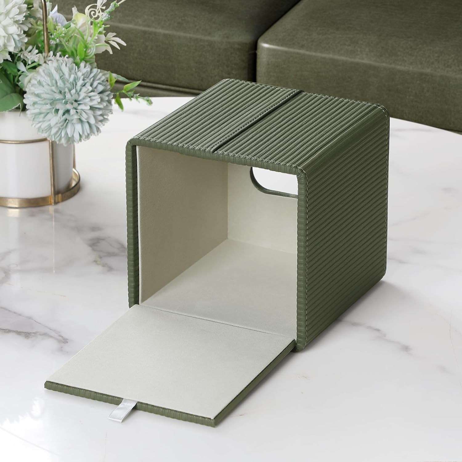 PU Leather Tissue Box Cover Square with Magnetic Closure, Modern Tissue Box Holder for Bathroom Bedroom Office Desk, Decorative Square Tissue Holder (Green)