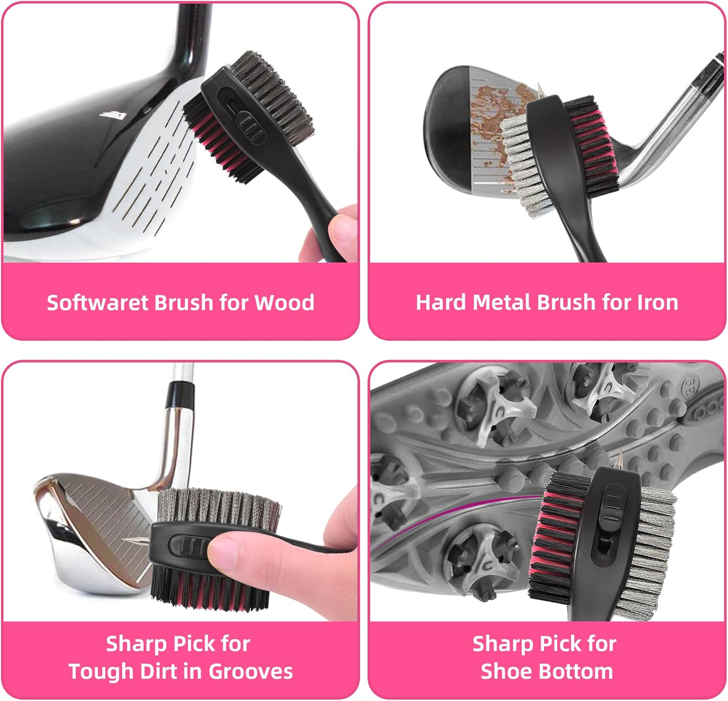 - Oversize Golf Brush: Features a hidden groove-cleaning brush and sharp pick for removing tough dirt from club grooves and shoe spikes, with a 2ft extendable zip-line for convenience.
