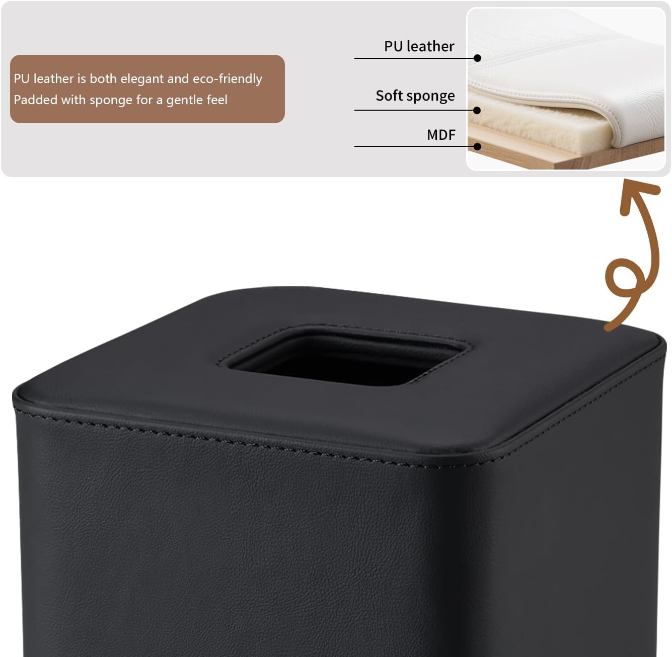 GORESE Leather Tissue Box Cover Square Tissue Box Holder for Kleenexs, Tissue Cover for Cube Box Tissues, Kleenexs Box Holder for Bedroom, Living Room, Bathroom, Black