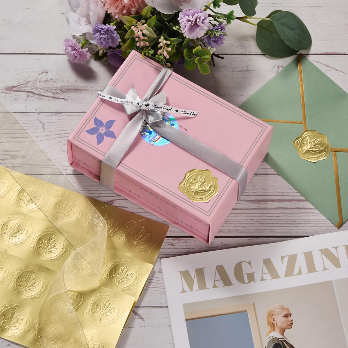 - Embossed Gold Foil Stickers: 300 pieces autumn fall gold stickers for envelopes.