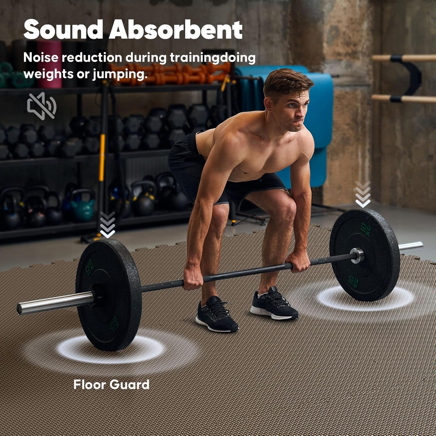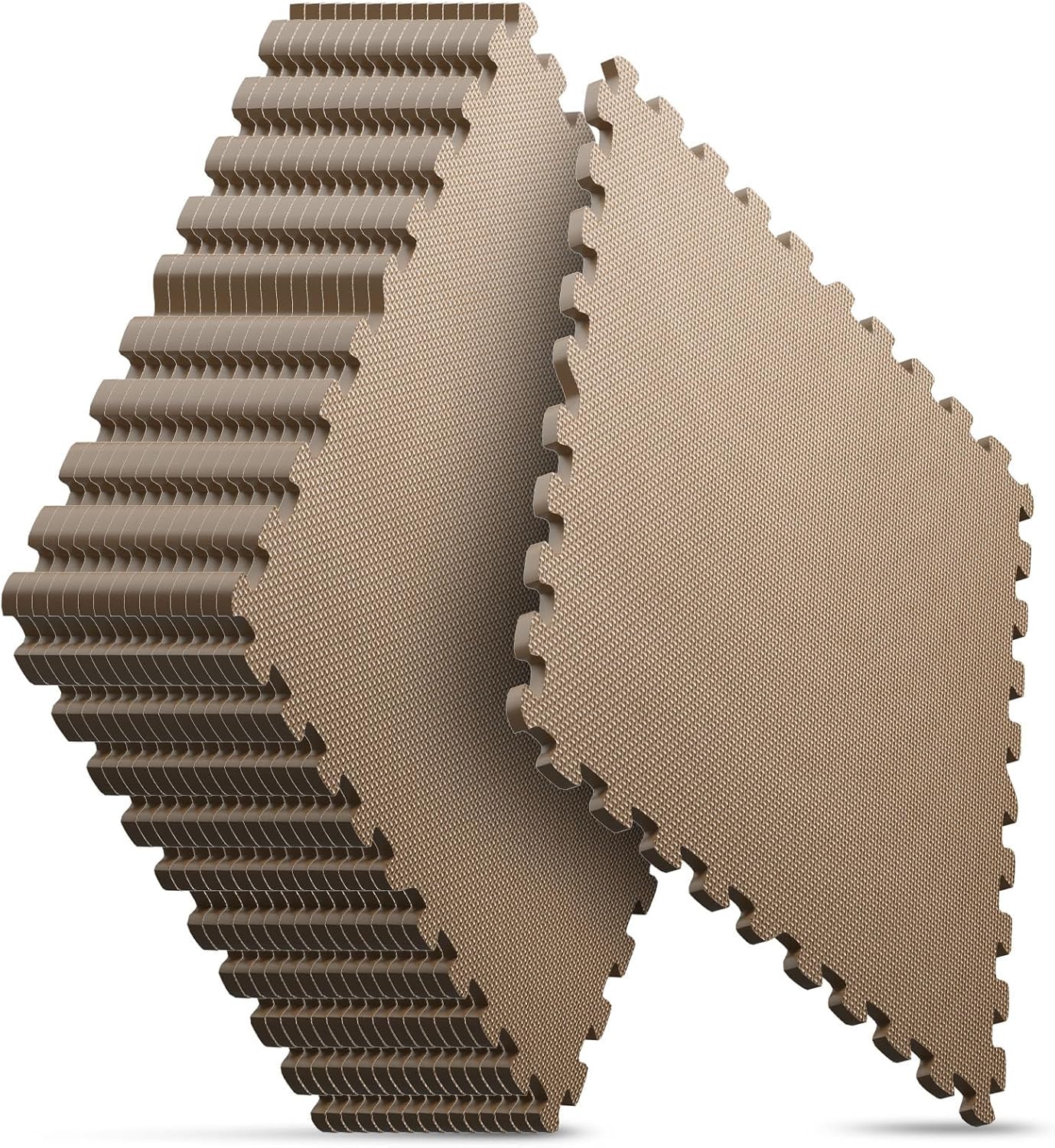 Home Gym Mat, Puzzle Exercise Mat, EVA Interlocking Foam Floor Tiles for Home Workout Equipment and Kids' Play Areas - Blue, 24 in x 24 in x ½ in - (Brown, 16 Pack(64 SQ FT))