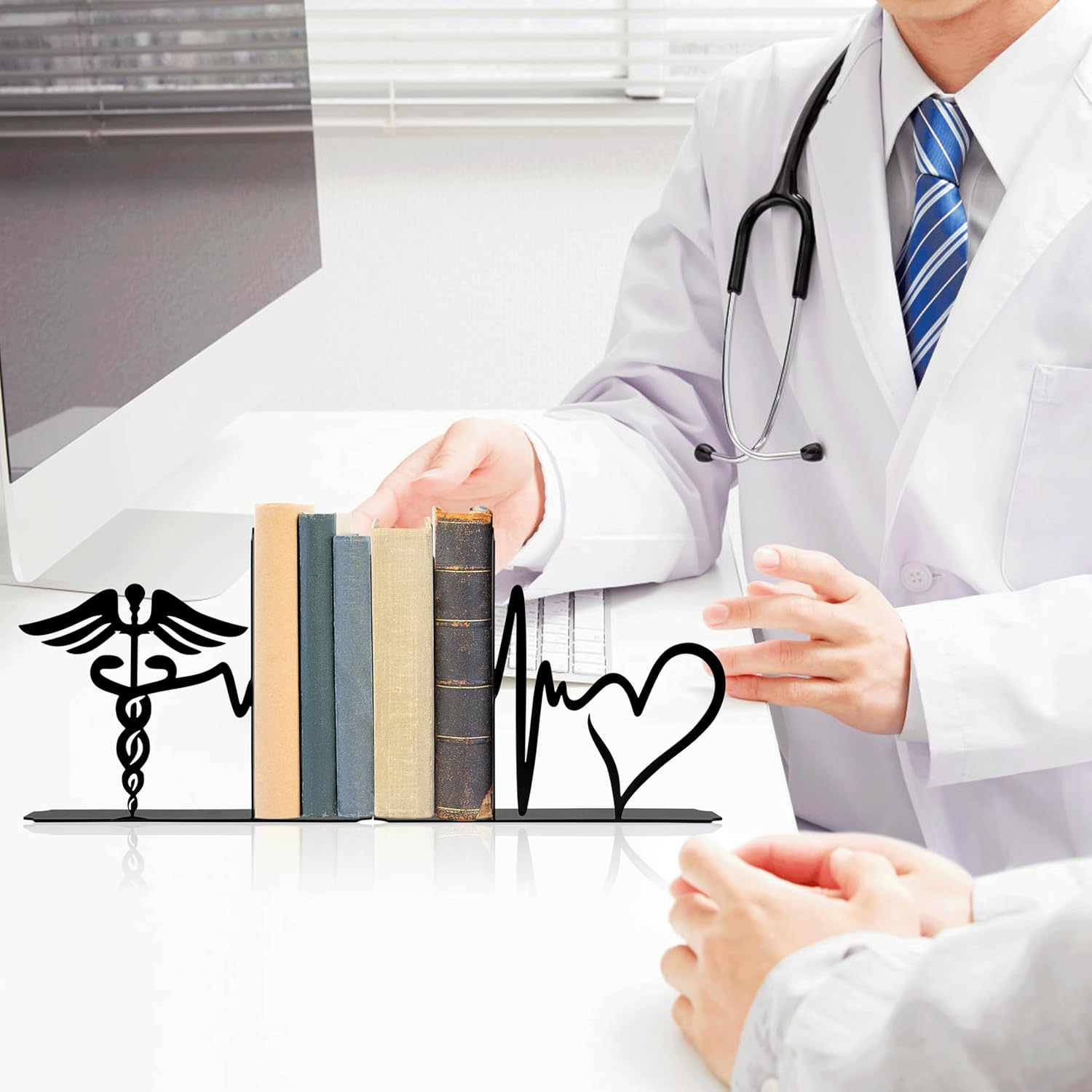 Medical-Themed Bookends for Shelves - Sturdy Office Decor for Clinics, Nurse Gifts & Study Decor, 7.1x1.2x6 Inch Bookshelf Decoration for Medical Professionals