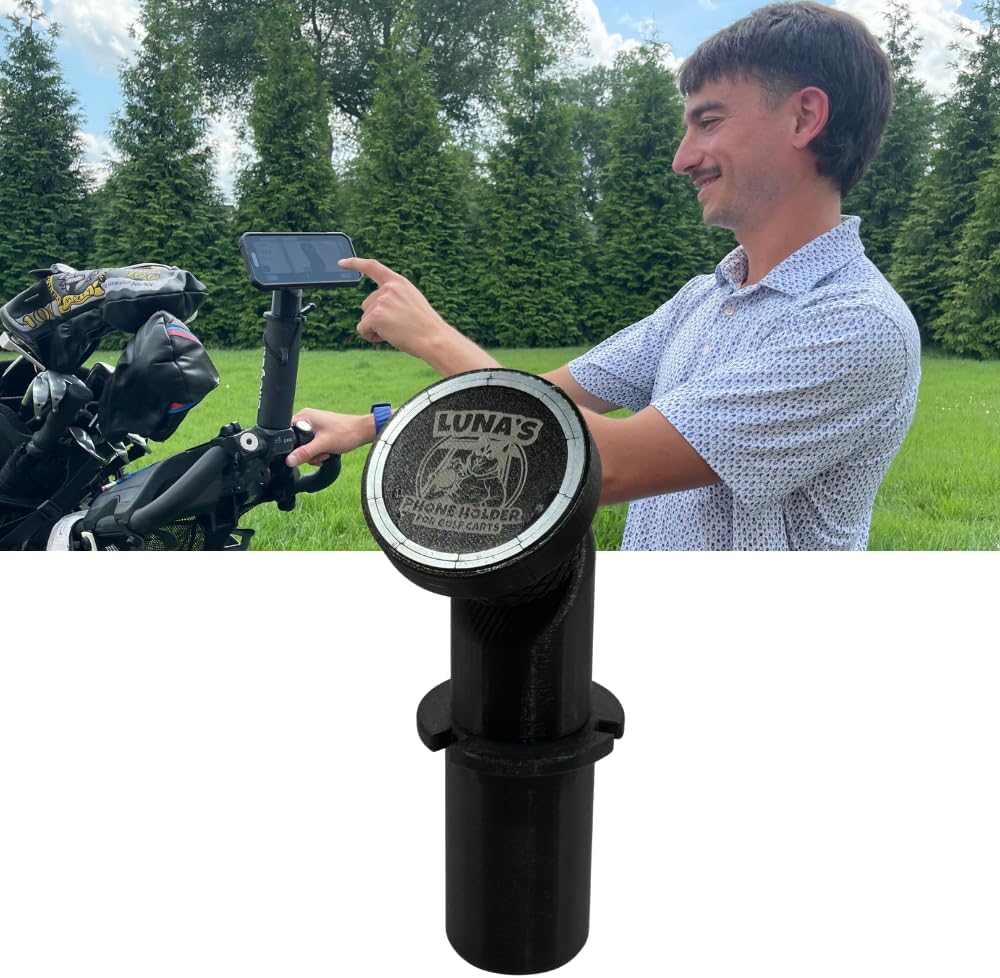 Luna's Phone Holder for Push cart Umbrella Ports, MagSafe Compatible Mount, 45lb Rated Magnet, Adjustable Neck, for iPhone 12 and Later, Golf Cart Compatible