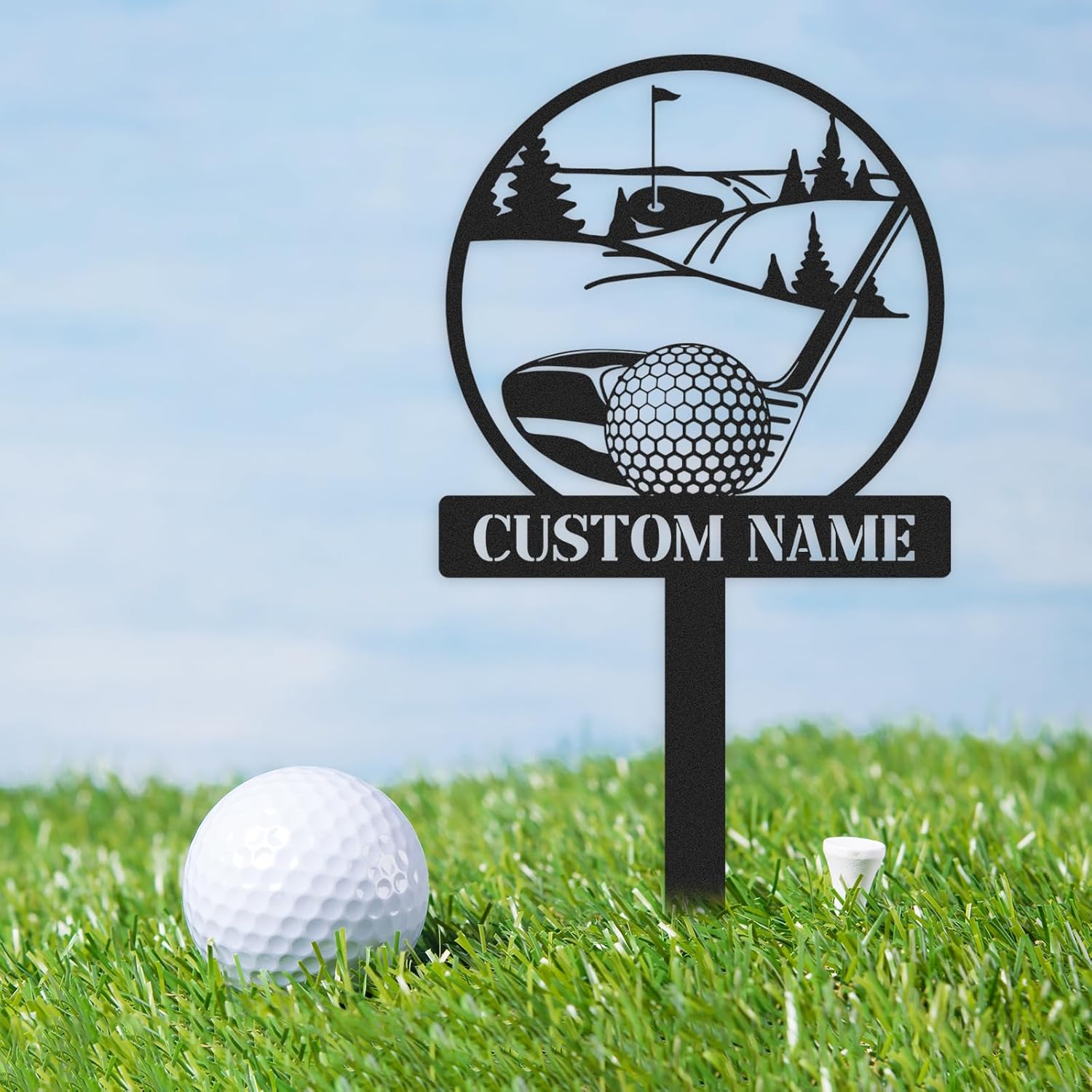 Personalized Golf Tee Garden Sign, Golf Memorial Stake, Custom Name Sign, Lawn Patio Golf Course Decorations Outdoor, Metal Yard Art, Rustic Sporting Garden Decor, Personalized Golf Gifts Color05