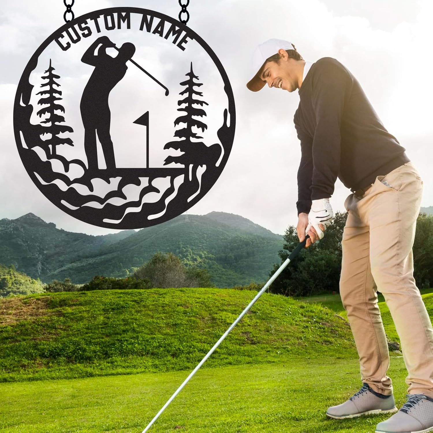Personalized Golf Metal Wall Art, Vintage Golf Wall Decor, Custom Signs Outdoor Metal, Sports Theme Home Decor for Man Cave Office Garage Bar, Personalized Golf Gifts for Men Dad Father Color01