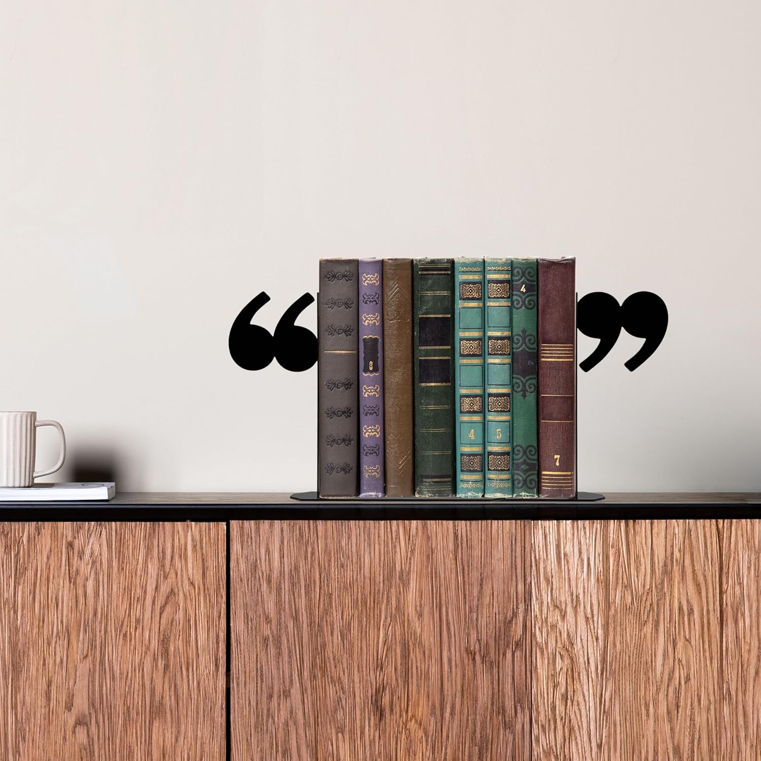 Cute Quotation Mark Metal Bookends – Novelty Decorative Shelf Organizers for Books | Unique Teacher Gifts & Librarian Gifts, Bookish Decor for Shelves, Desks, Kids’ Rooms