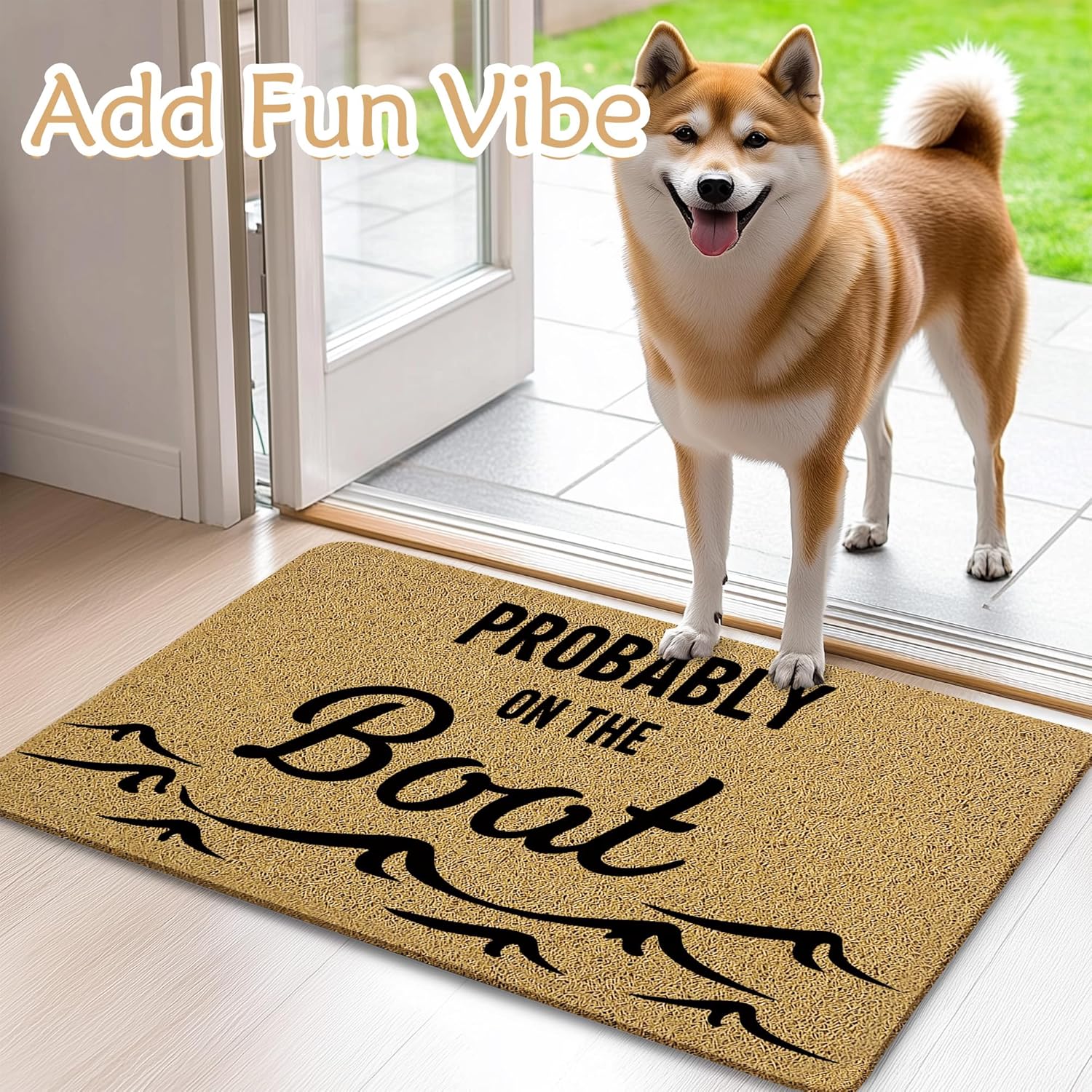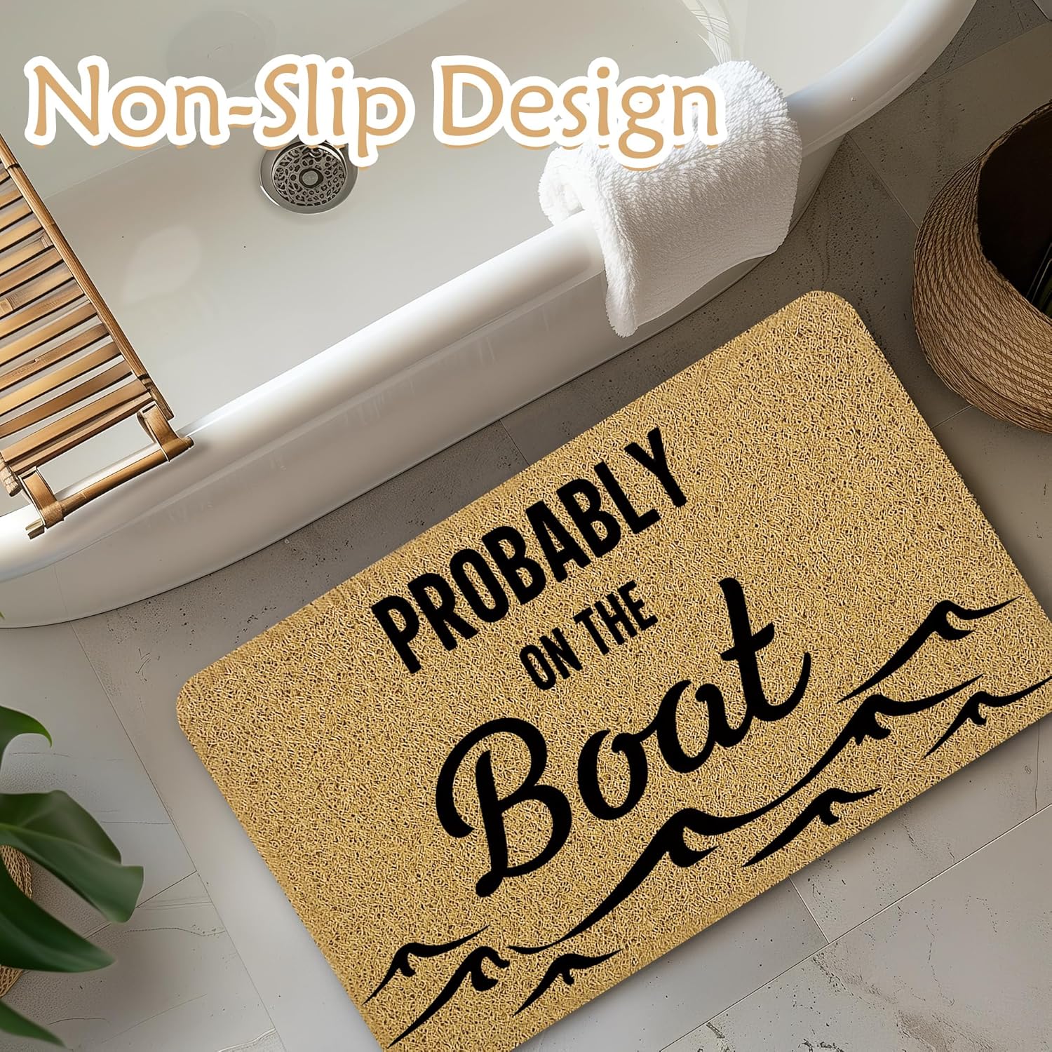 Coastal Welcome Mats for Front Door, Lake House Door Mat, Probably on The Boat Nautical Doormat for Porch Outside Inside Outdoor Indoor Entrance, Boating Ocean Bath Rug, 17x30 Inches