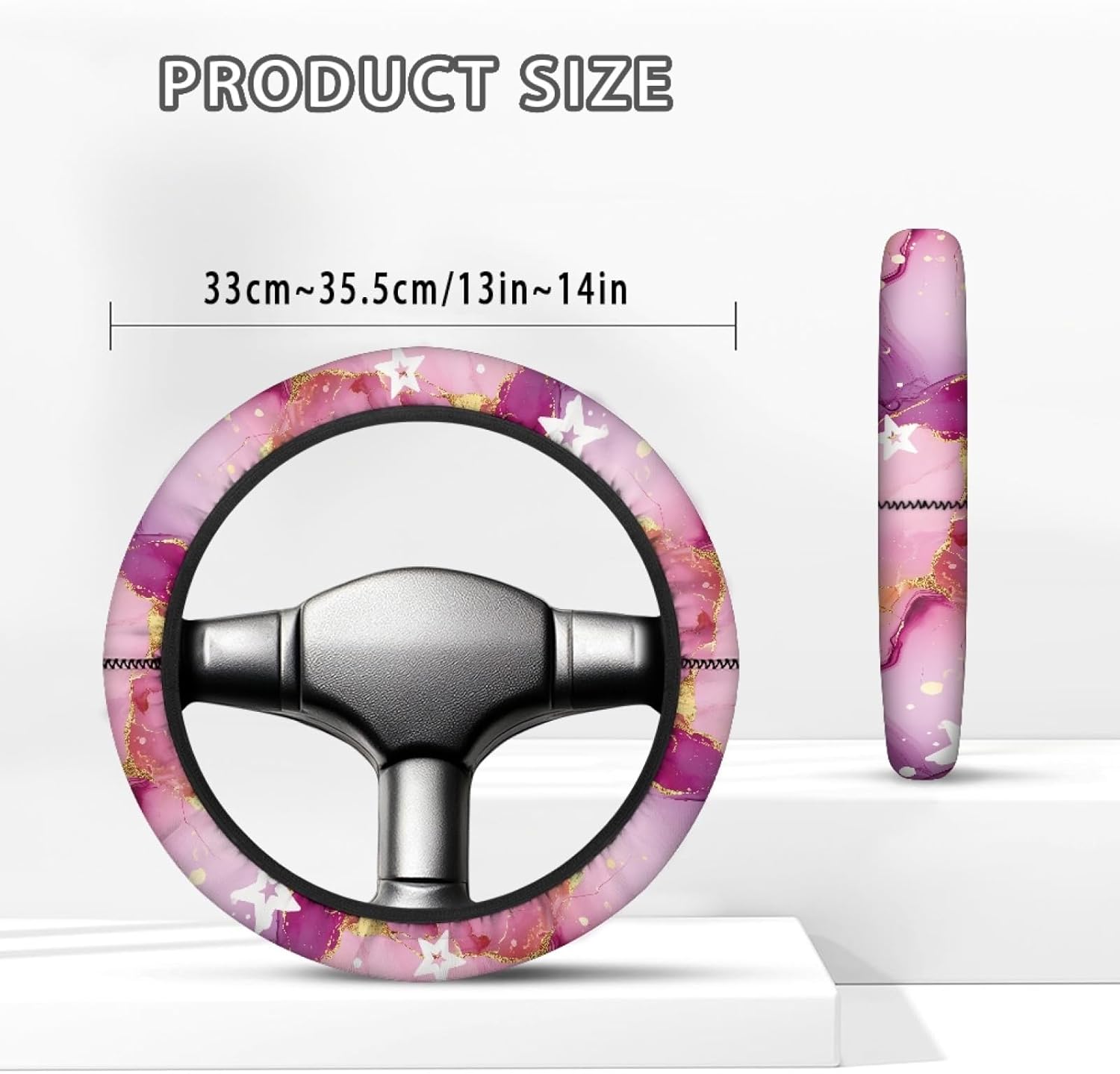 - Easy to Install: Place the cover on top of the steering wheel, pull tight the steering wheel cover from top to side, gradually lower it with both hands on either side to tighten, fix the bottom of steering wheel cover and adjust it