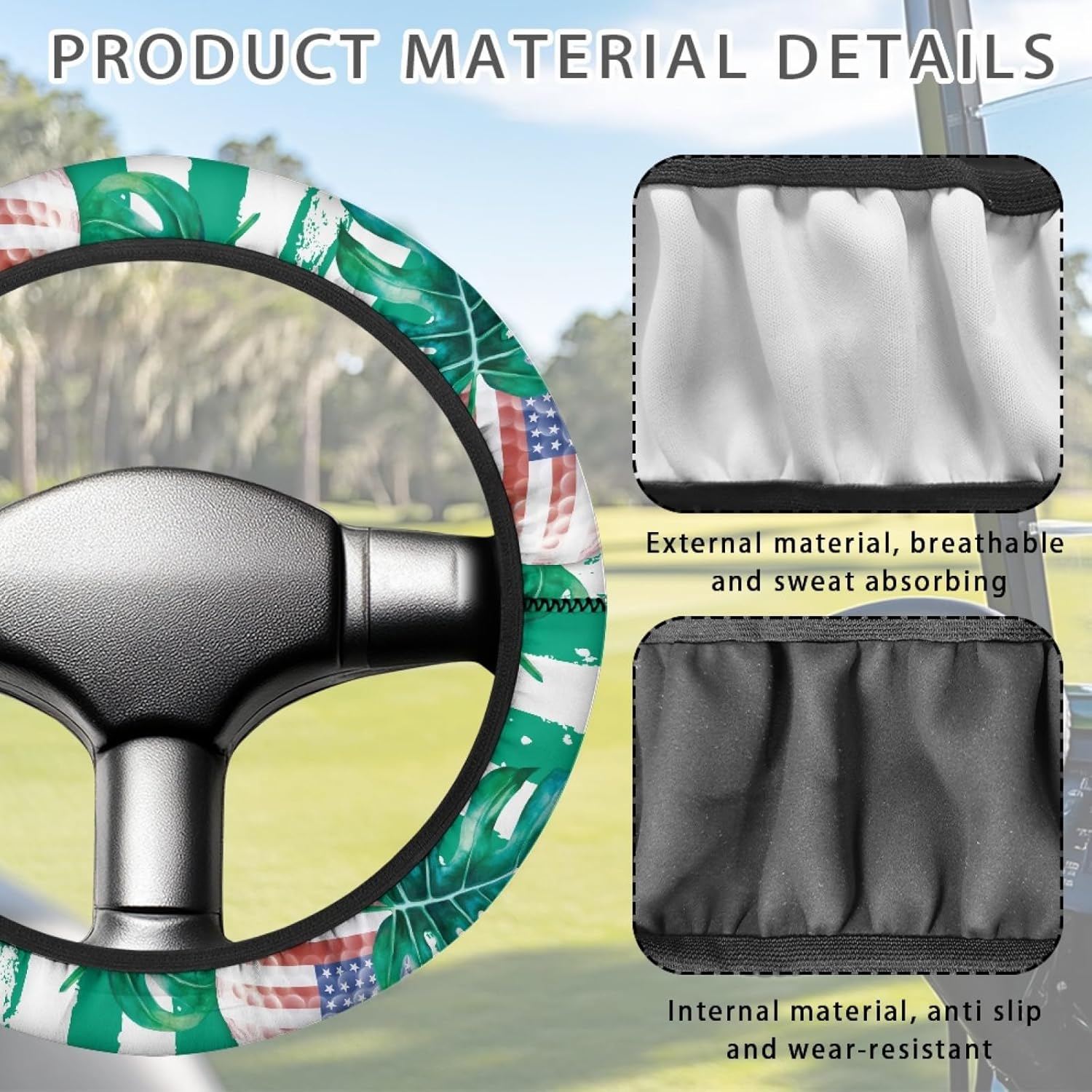 - Features: Golf cart steering wheel cover has a non-slip surface, a better grip on the steering wheel allows you to better control the vehicle, heat insulation, reflection of sunlight, cooling effect