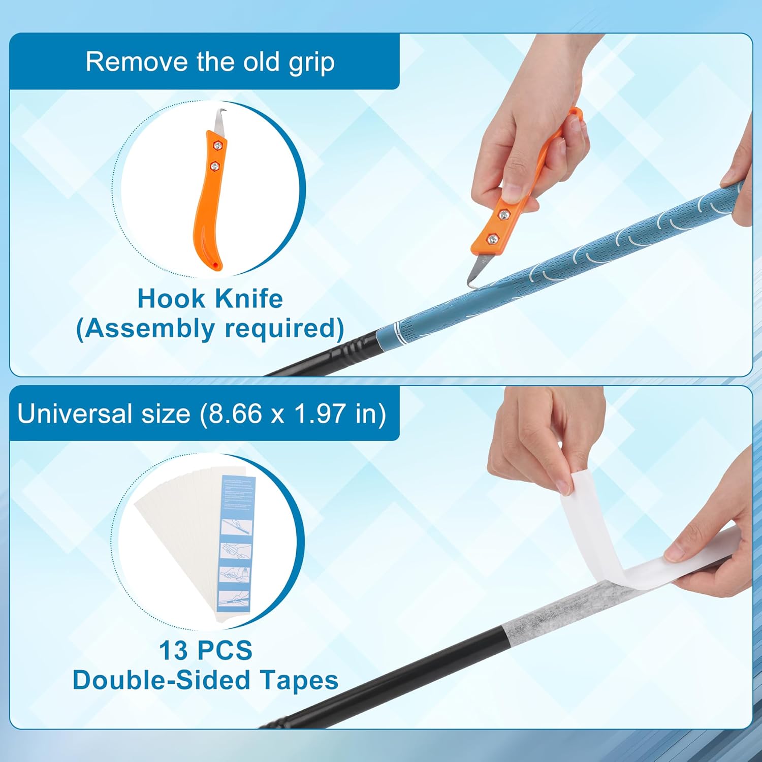 - 【13P & Strong Adhesion】: The golf grip kit double-sided tape has good adhesion for firmly sticking, transparent, and measures 8.66 x 1.97 in (L*W). The abundant quantity and size fit for most golf clubs