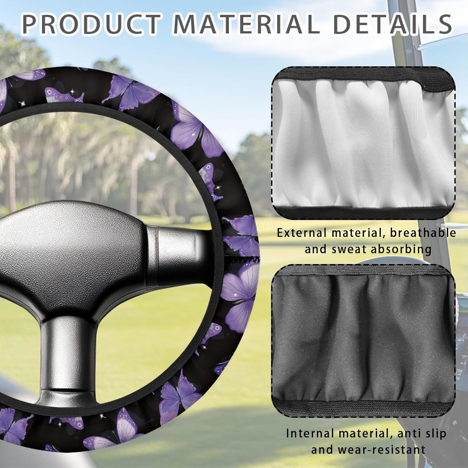 Purple Butterfly Golf Cart Steering Wheel Cover 13 Inch - 14 Inch Club Cars Wheel Covers Universal Golf Cart Accessories Great Gifts for Golfer