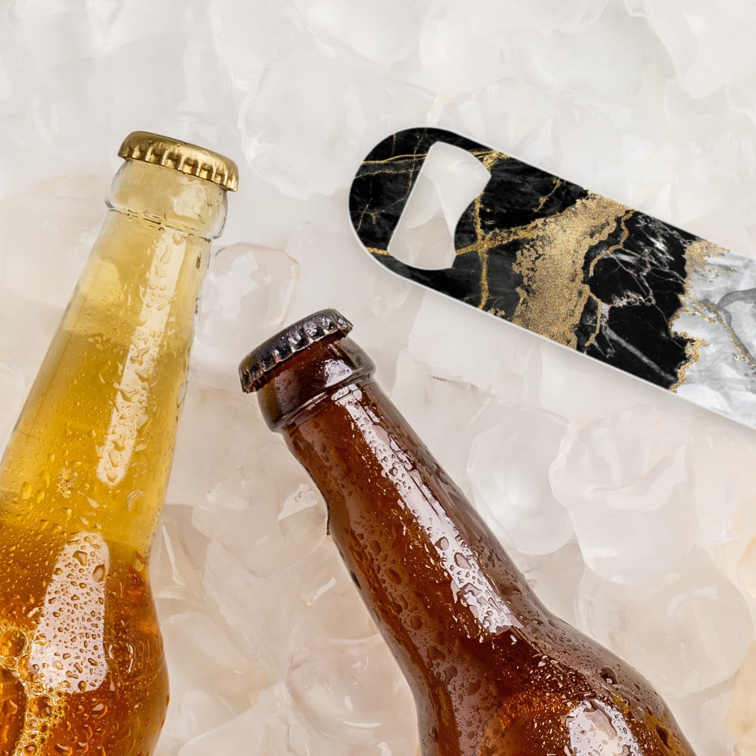 2 PACK Beer Bottle Opener, Stainless Steel Flat Bottle Openers,7 inch Metal Decor,Black And Golden Marble