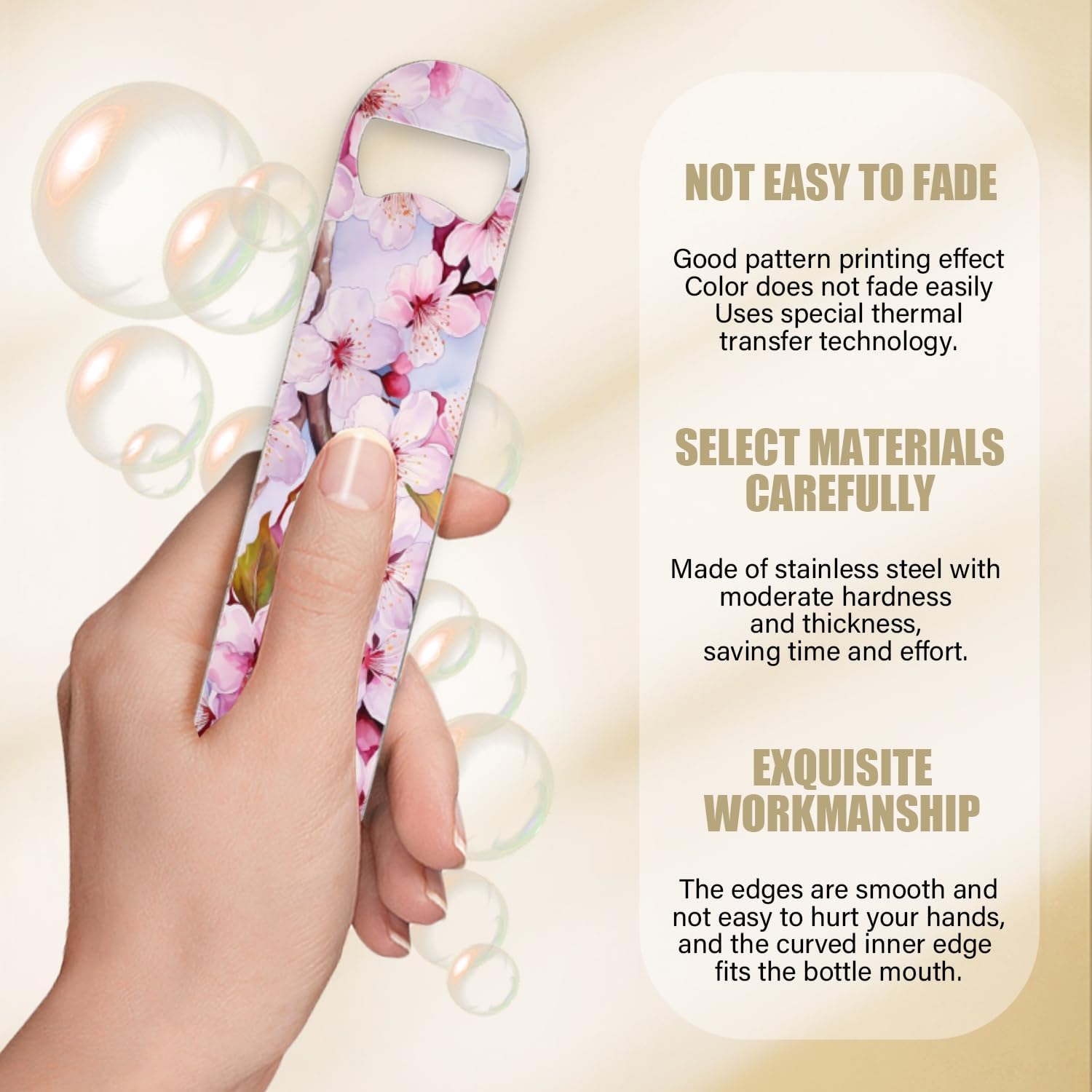 2 PACK Beer Bottle Opener, Stainless Steel Flat Bottle Openers,7 inch Metal Decor,Cherry Blossoms With Pink Petals