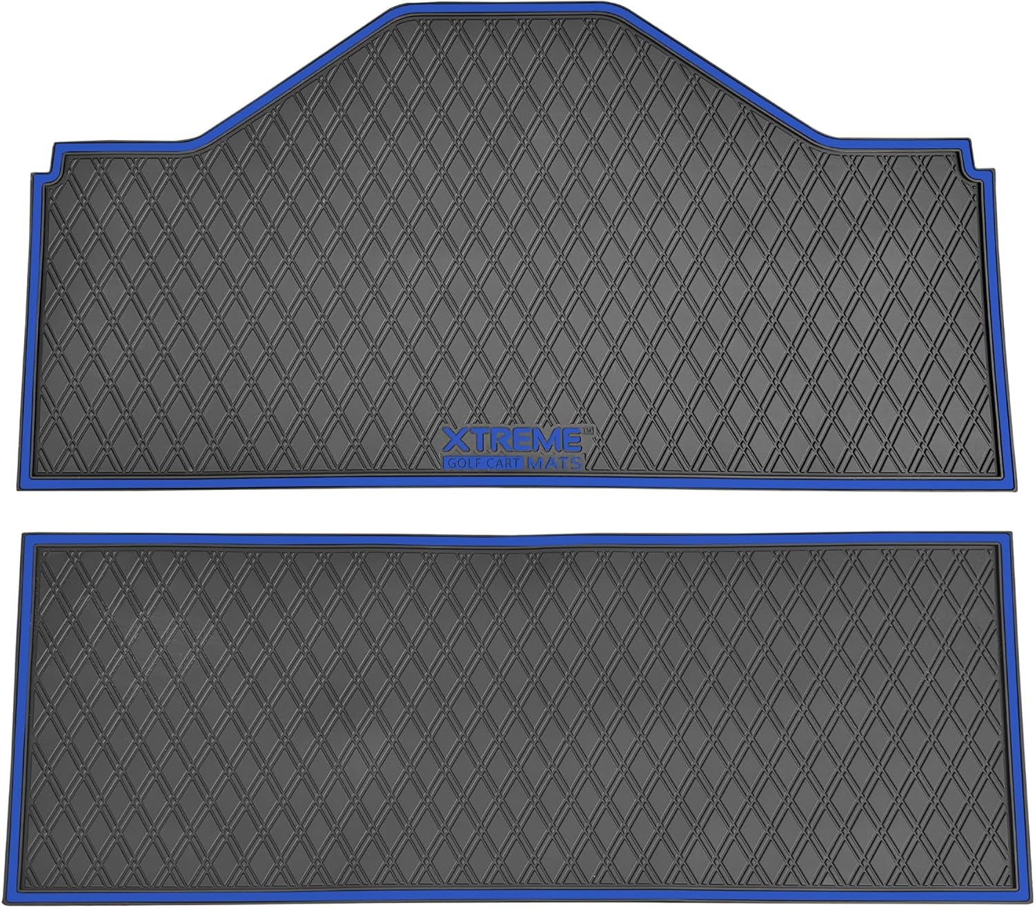 Xtreme MATS Evolution D5 Golf Cart Floor Mat Set- Rubber Double Diamond Design - Fits DMAX, GT 4 & 6, D5 4F (4 Forward Facing) Including Evolution Maverick and Ranger Trims (Blue Trim)