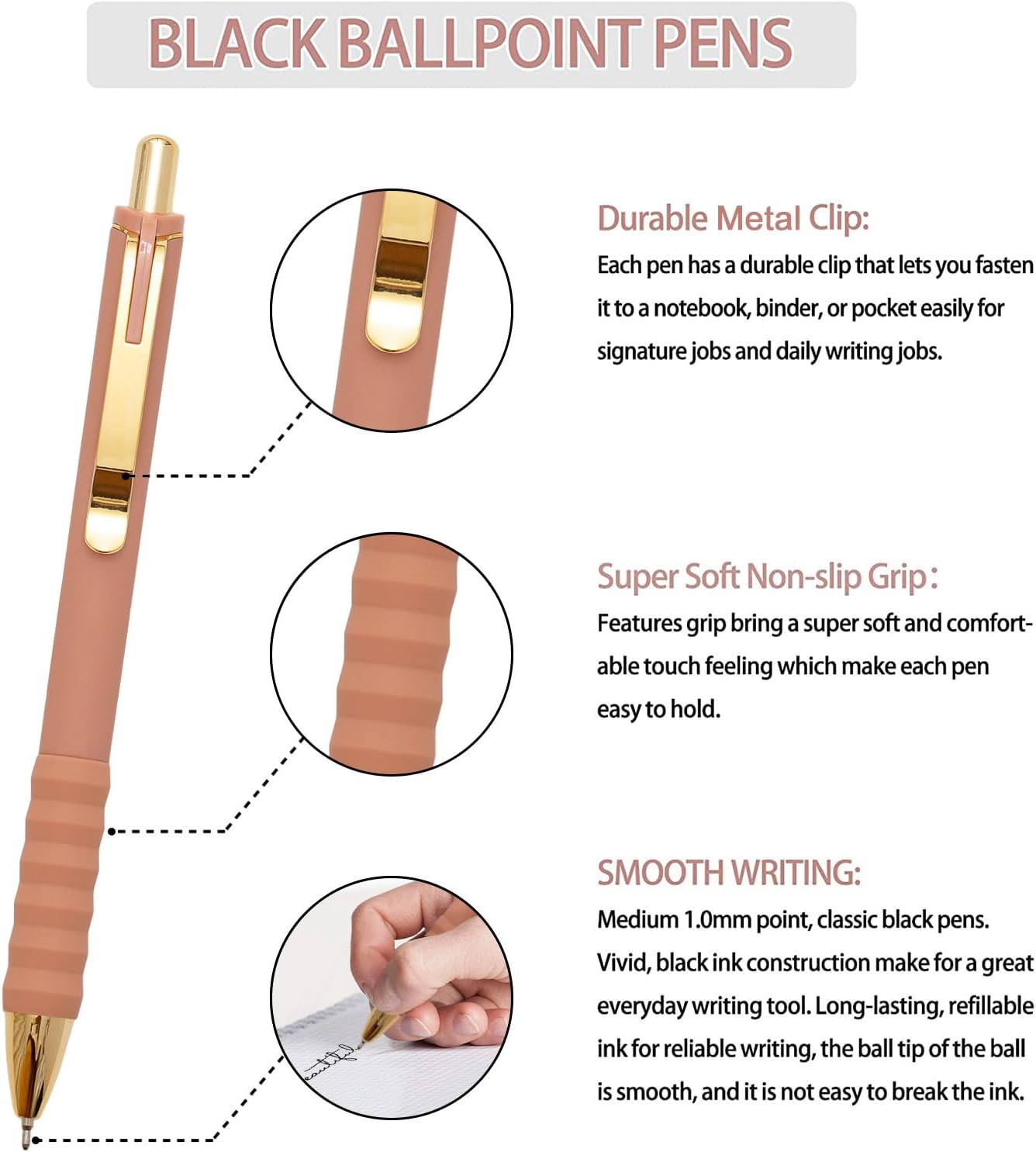 - Super Soft Non-slip Grip: Features grip bring a super soft and comfortable touch feeling which make each ballpoint pen easy to hold