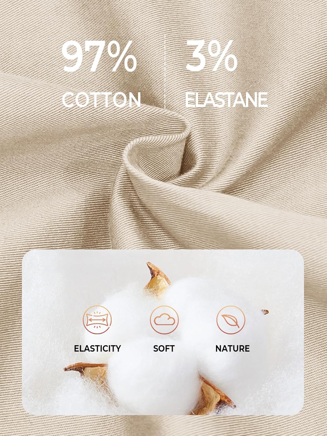 • Cotton Twill Chino Shorts: Mens casual shorts made of Cotton and Elastane blend, ensures flexibility, softness, skin-friendly, quick dry and not wrinkling easily. Perfect for casual outings, work and summer trips to the beach