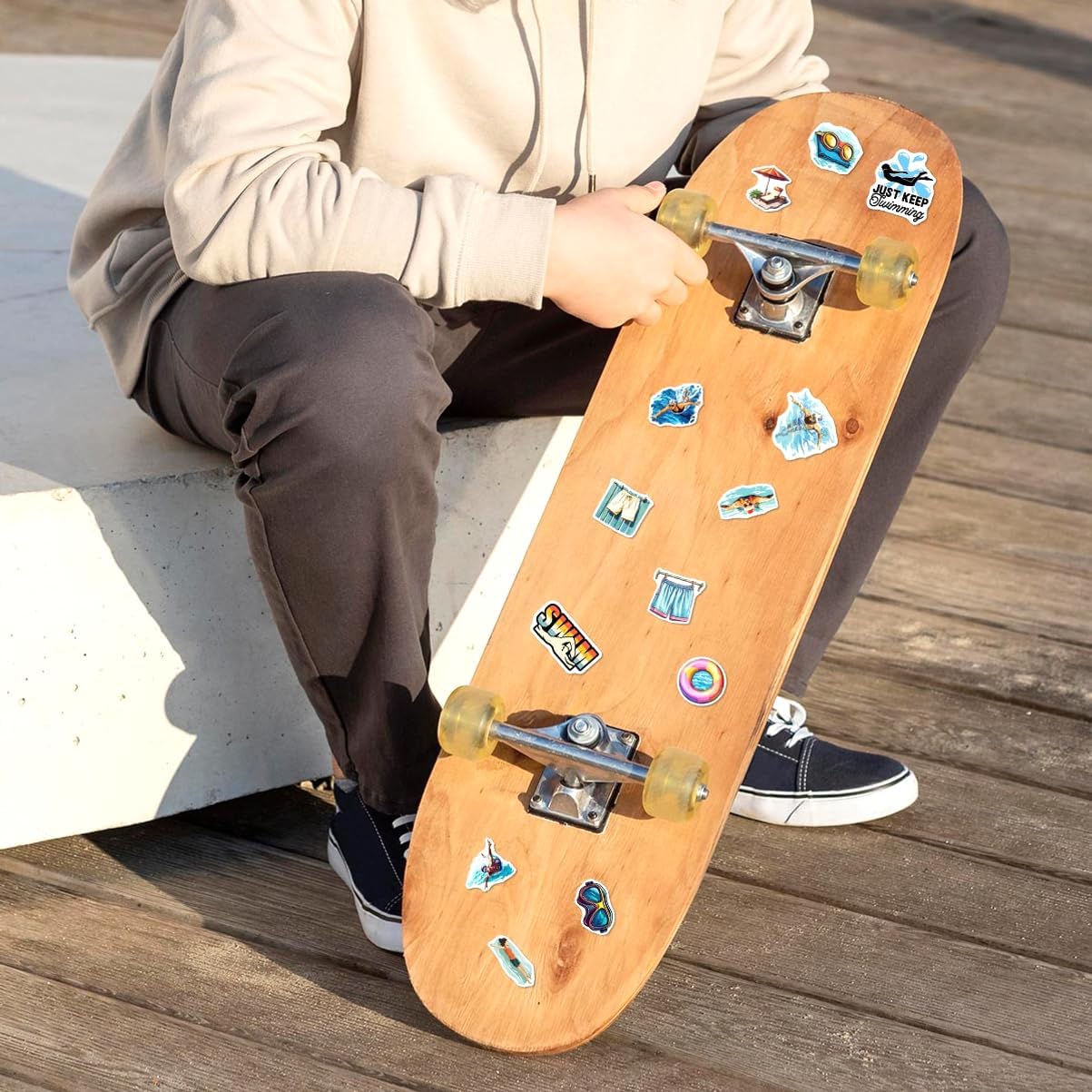 - EASY APPLICATION REMOVAL: Our swim stickers adhere smoothly to most flat surfaces, providing easy application and residue-free removal, making customization hassle-free and fun