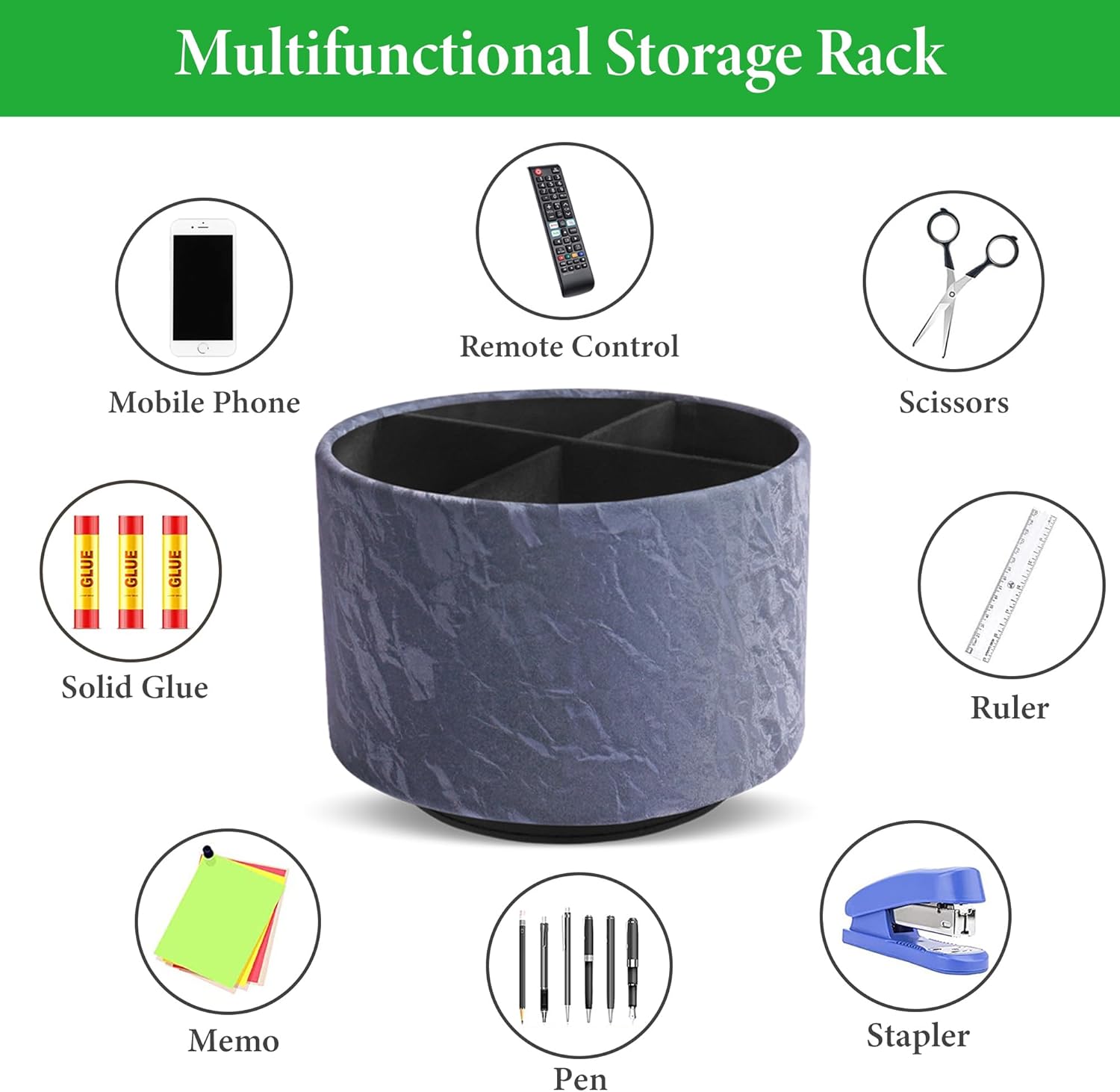 Hennaja Round Leather Art Supply Organizer,Remote Control Holder,360 Degree Spinning,Multi-Functional Pencil Holder,4 Compartments Desktop Stationary Organizer(1-Hill Blue)