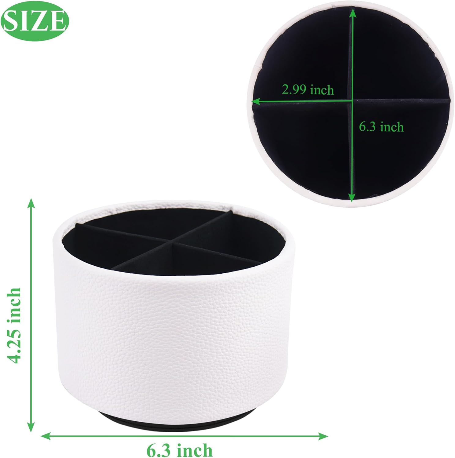 Hennaja Round Leather Art Supply Organizer,Remote Control Holder,360 Degree Spinning,Multi-Functional Pencil Holder,4 Compartments Desktop Stationary Organizer(1-Lichee White)