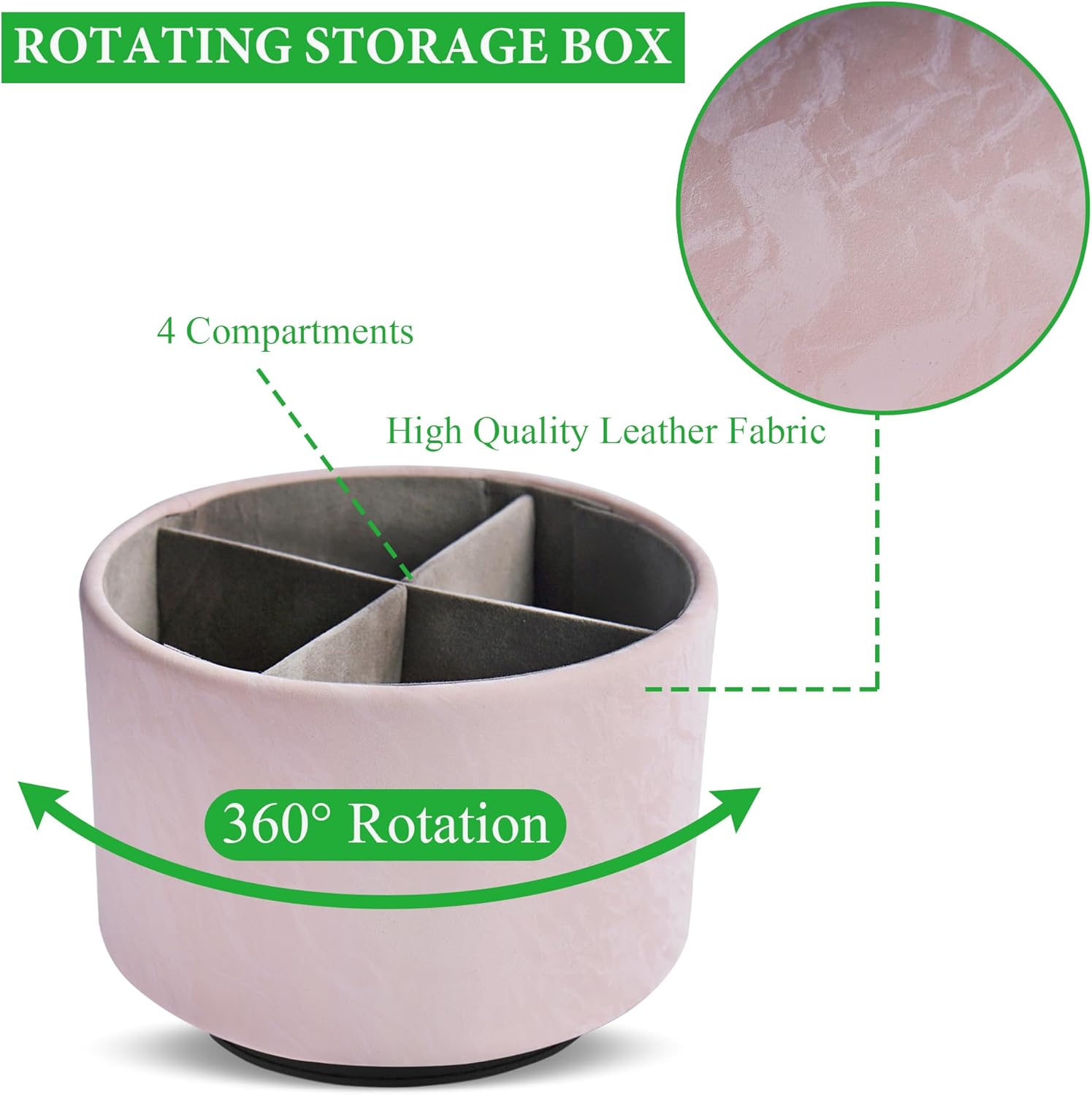 Hennaja Round Leather Art Supply Organizer,Remote Control Holder,360 Degree Spinning,Multi-Functional Pencil Holder,4 Compartments Desktop Stationary Organizer(1-Hill Pink)