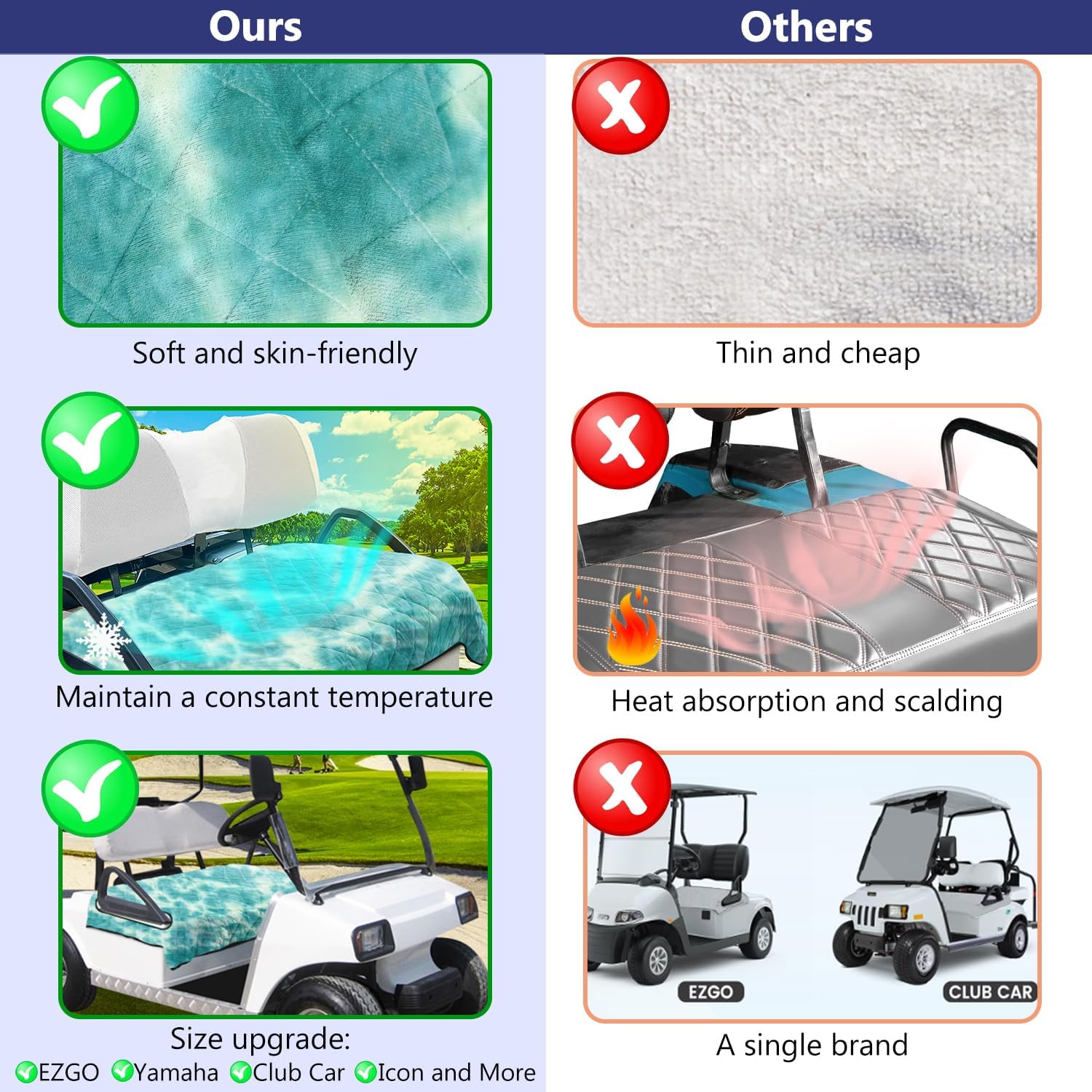 - 【Premium Comfort Version】Our golf cart seat blanket provides superior comfort all year round, seamlessly adapting to different temperatures. The innovative design maintains optimal warmth, ensuring a comfortable experience whether it's a cool morning or a hot afternoon.