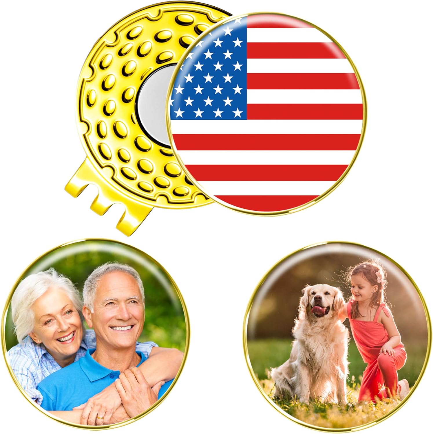 - Customized Set: 3 Pack contains 3 ball markers and 1 magnetic hat clip, customized with your photo/logo/name. Three colors available: silver/gold/black. Your unique personalized golf ball marker.