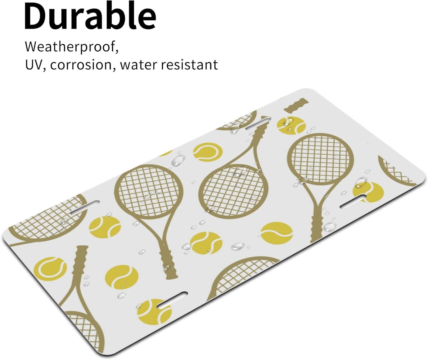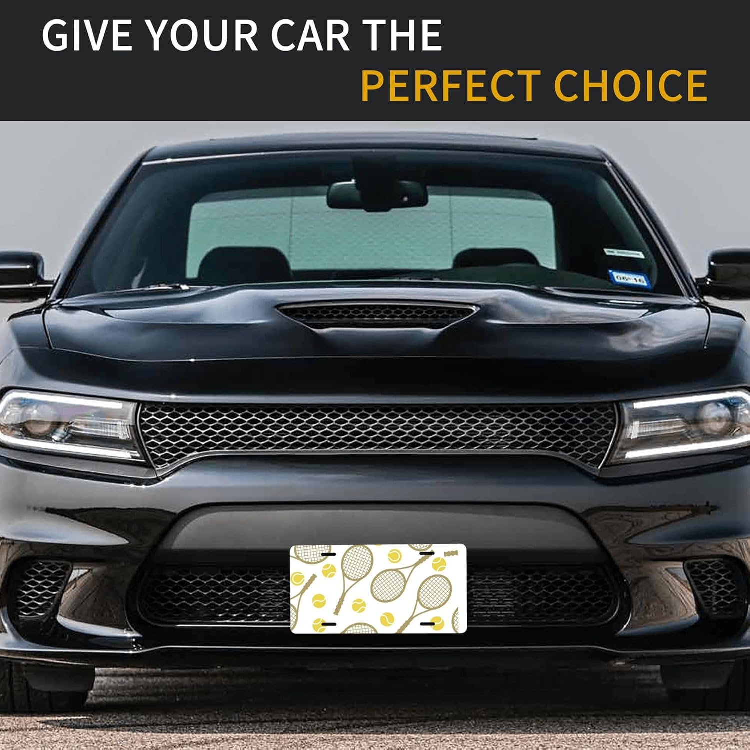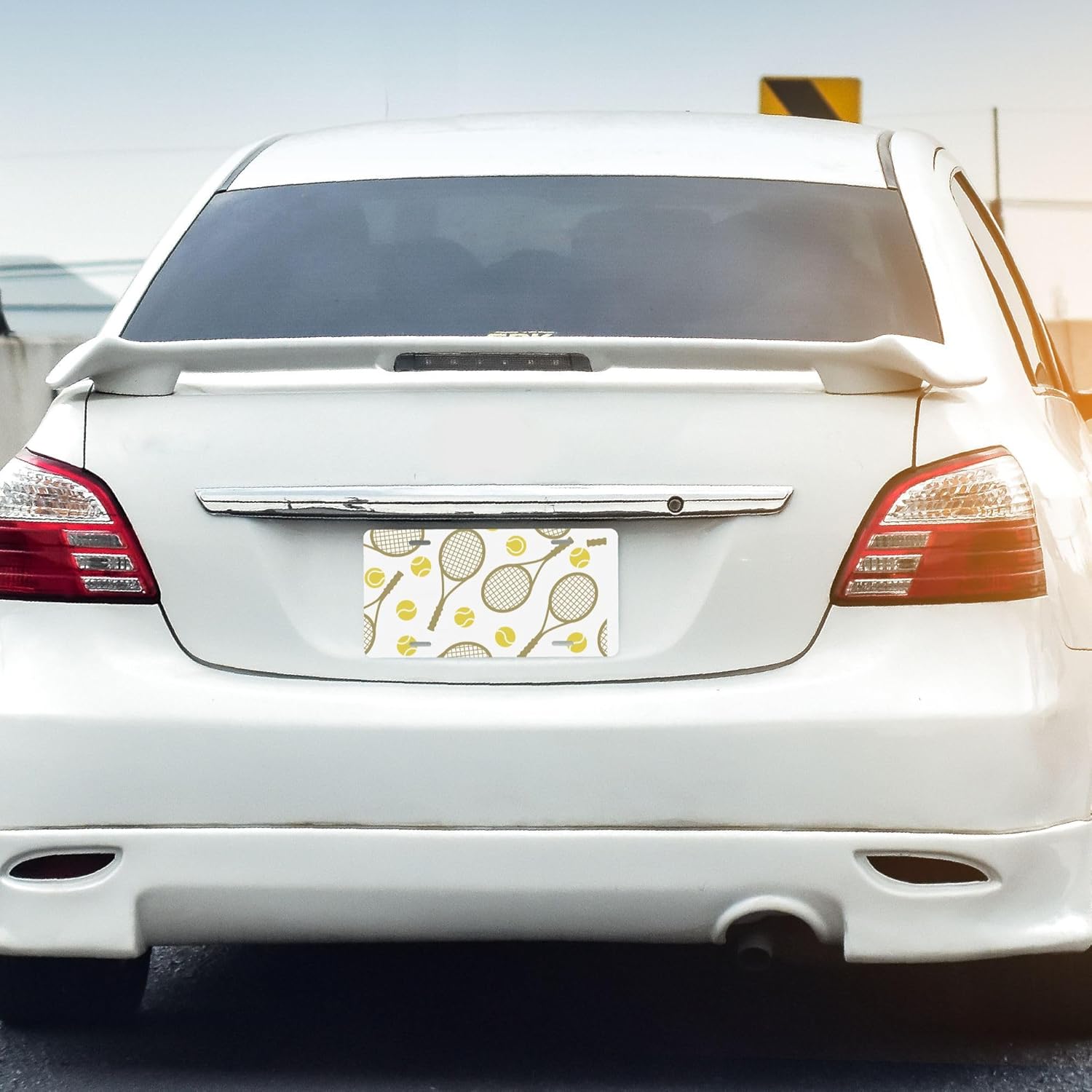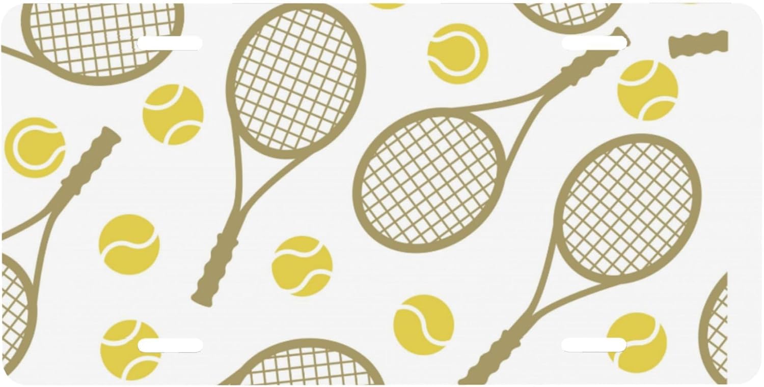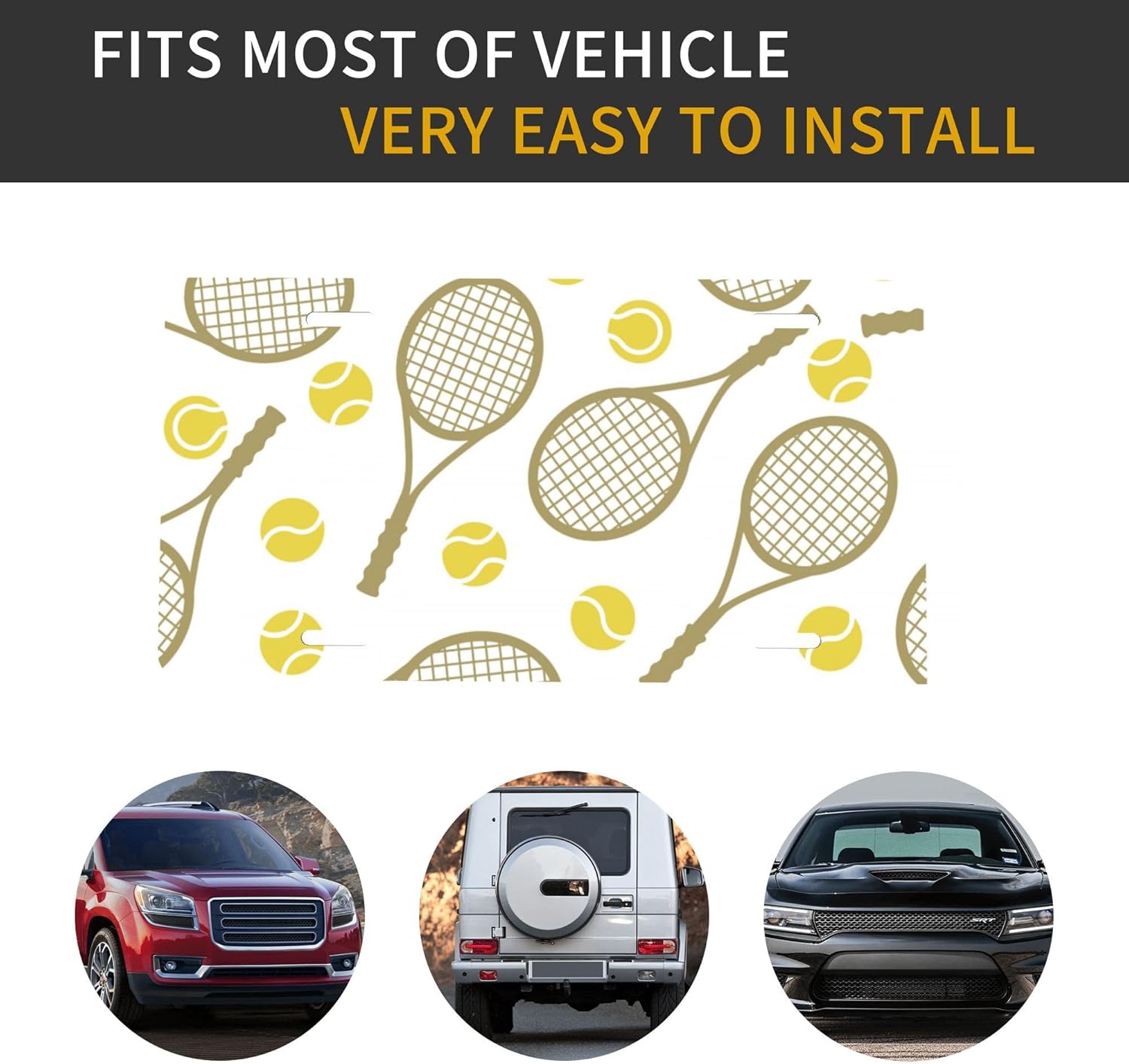 Front License Plate for Car Designs Sports Tennis Racket Ball Stainless License Plate Cover Holder for Men Women Metal Aluminum Decorative Accessory Vanity Tag Standard 6 X 12 Inch (4 Holes)