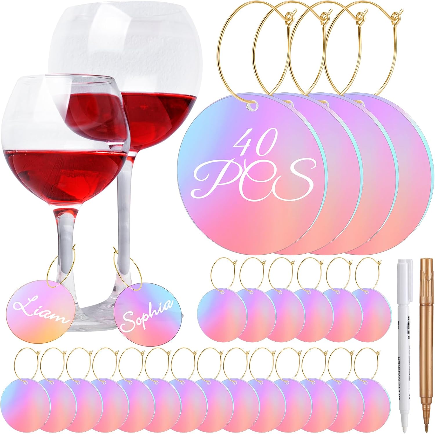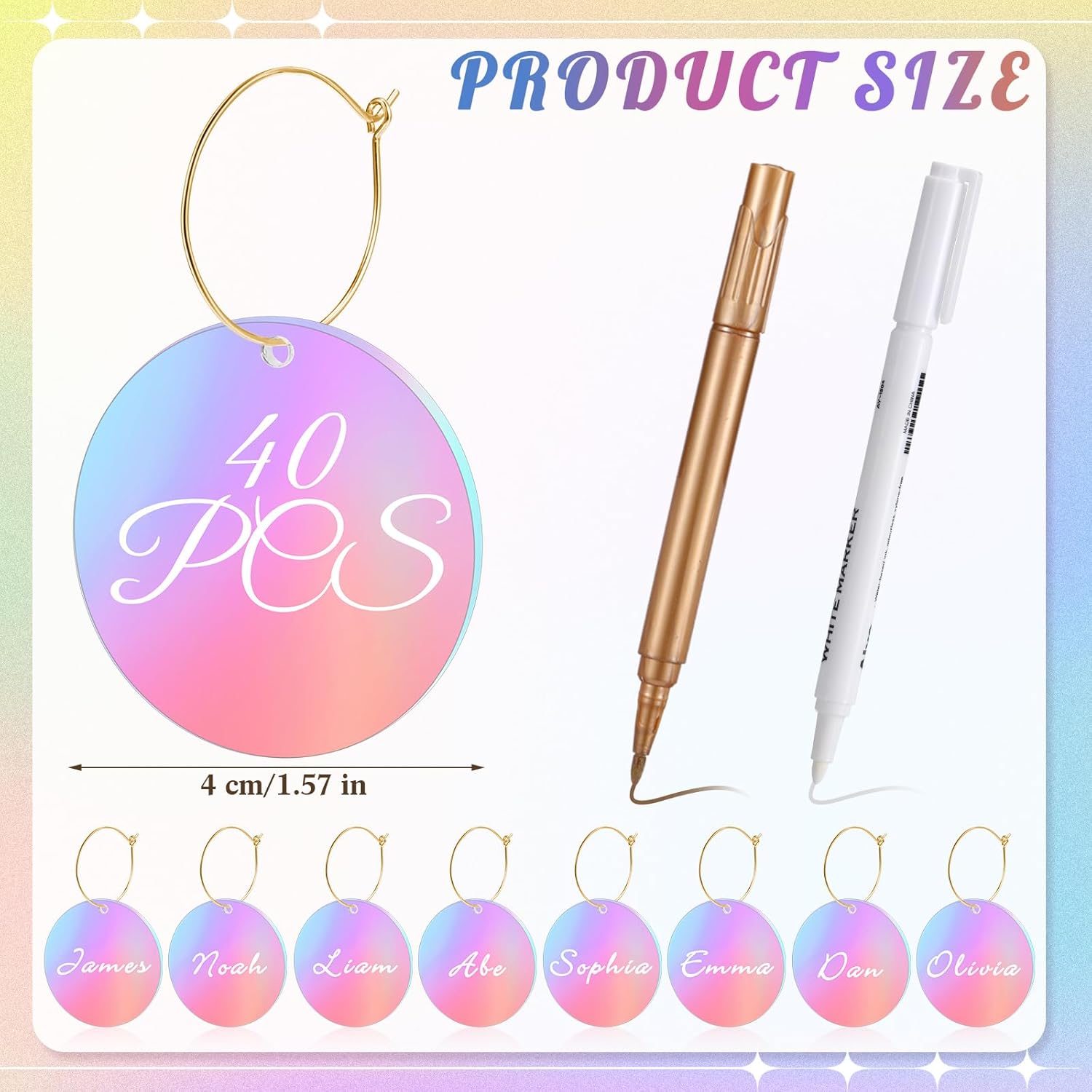- What You Will Get: each package includes 39 attractive, round acrylic wine glass charms in iridescent colors and 2 markers; This abundance ensures that you will have enough to fit all your party or hosting needs