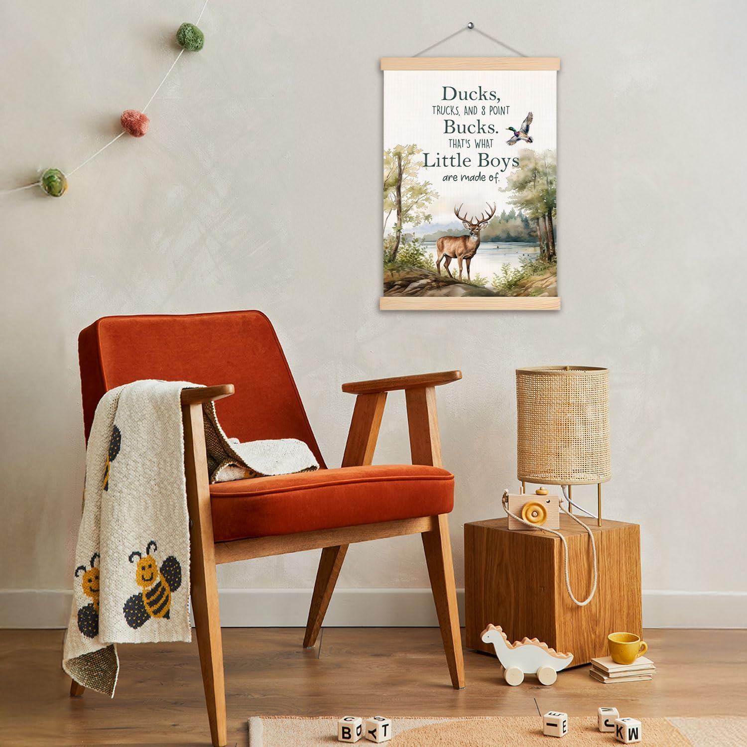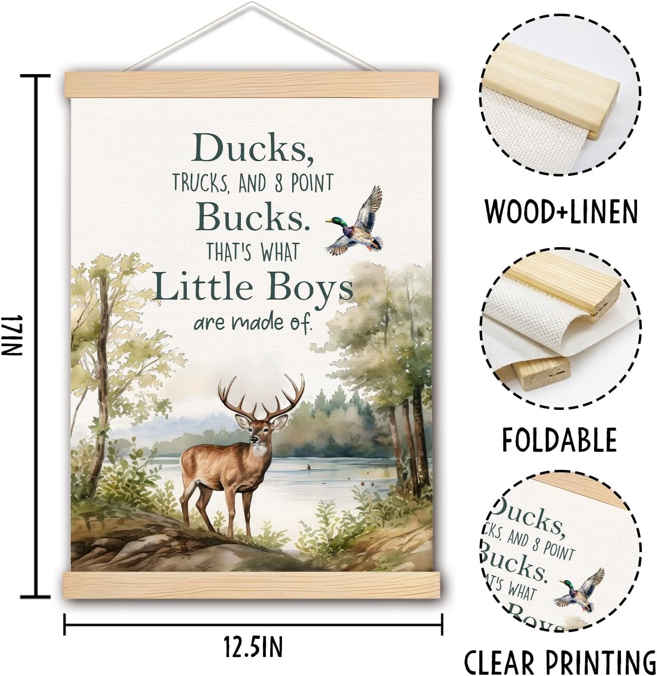 pouep Boys Nursery Wall Art Poster, Forest Nursery Decor, Farmhouse Woods Wild Deer Duck Canvas Prints Wall Decor for Toddler Kids Boys Bedroom Playroom Classroom, 12x16 Inches