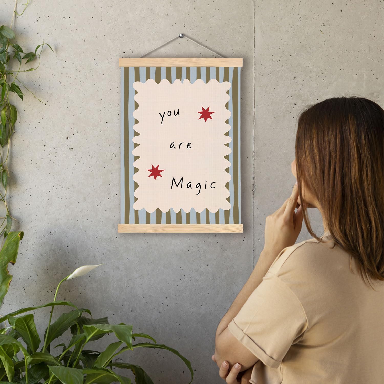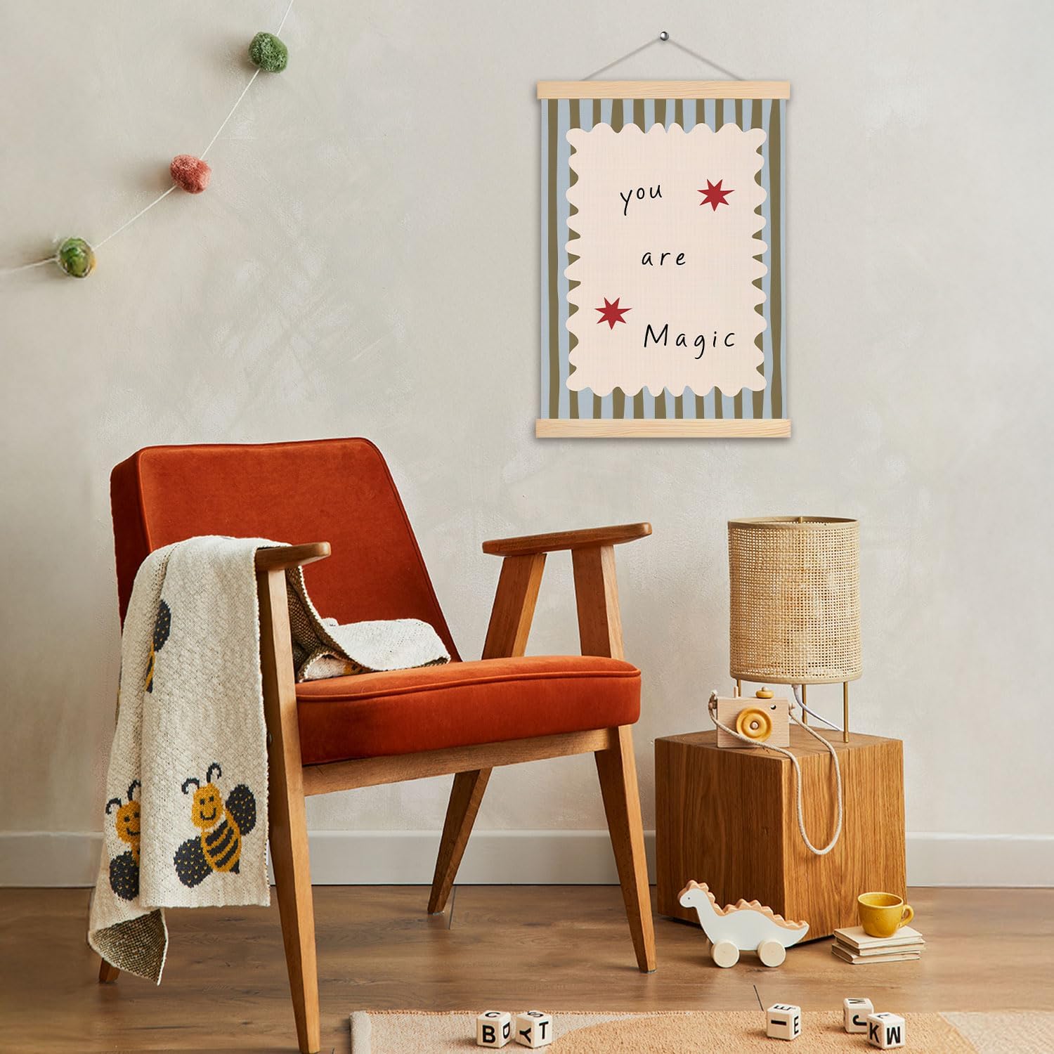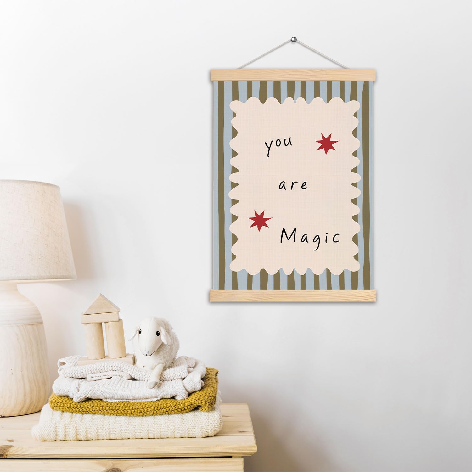 pouep You Are Magic Kids Nursery Wall Art Poster, Inspirational Positive Quote Neutral Striped Canvas Prints Wall Decor for Kids Boys Girls Bedroom Nursery Playroom, 12x16 Inches