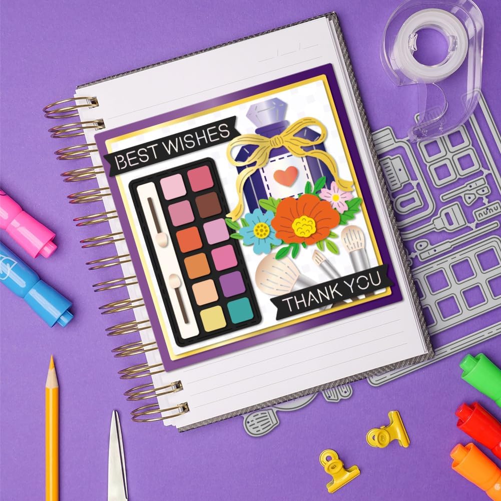 GLOBLELAND Cosmetic Bag Gift Card Holder Cutting Dies for DIY Scrapbooking Makeup Lipstick Brush Eyeshadow Cut Dies for Card Making Embossing Photo Album Craft Decor