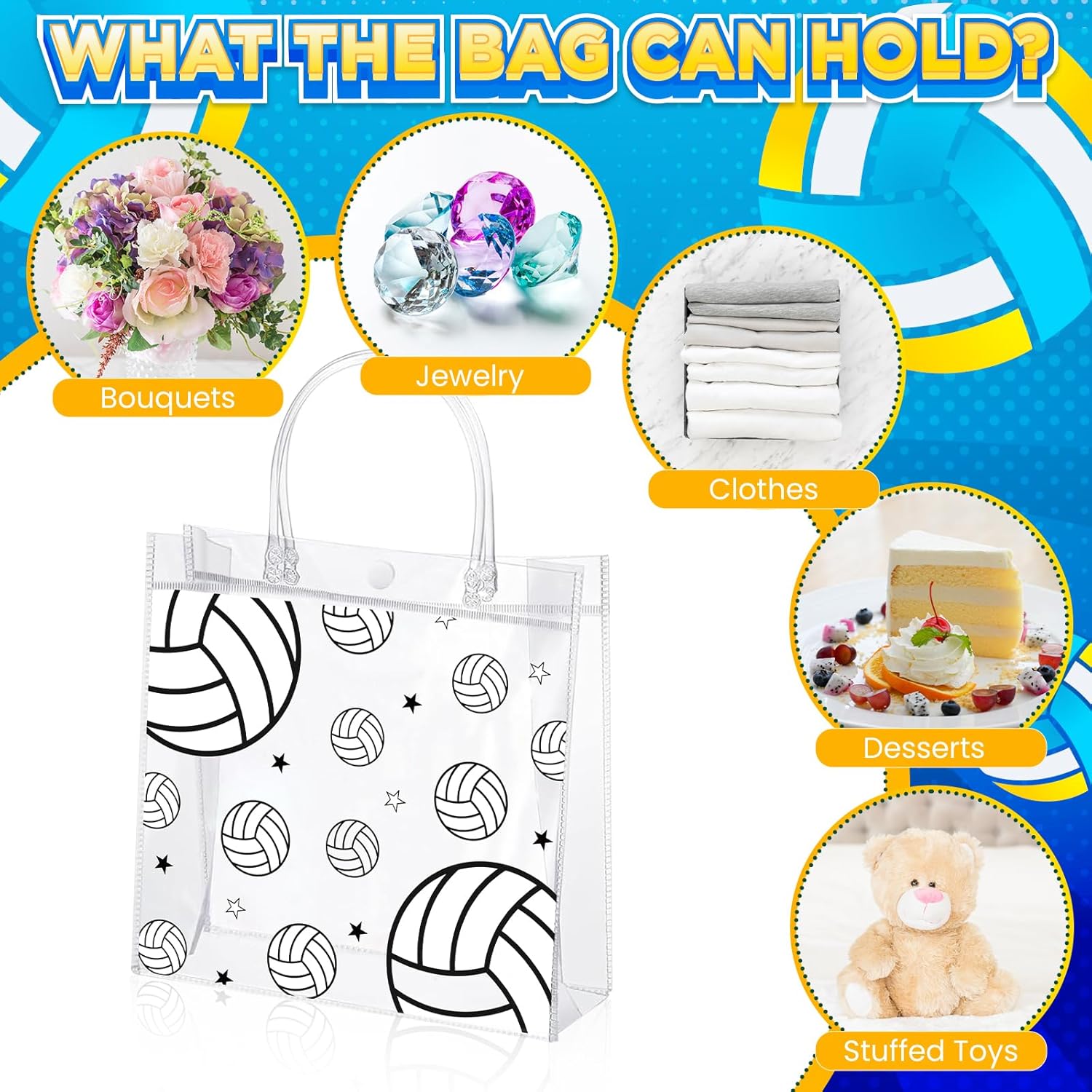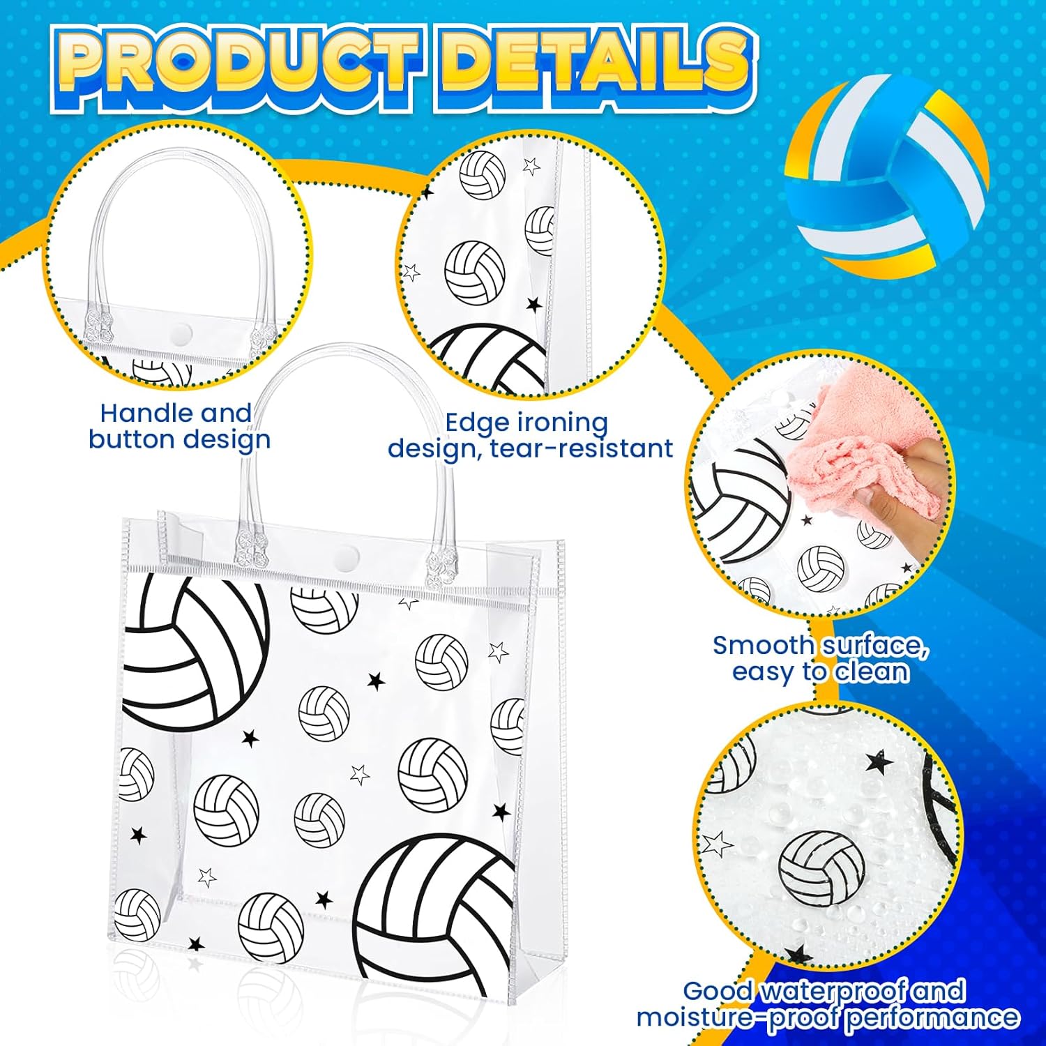 - Premium Quality: These volleyball goodie bags are made of high-quality PVC, sturdy and durable, reusable and lightweight, easy to carry with the portable handles, not easy to break or deform, the opening is sealed with a button to safely store your items and prevent them from falling off.