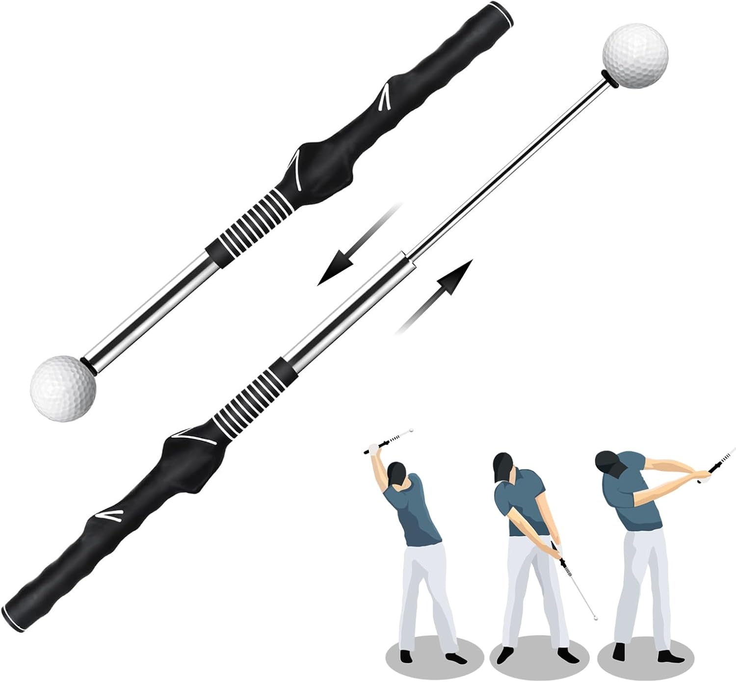 - 【Retractable Golf Swing Trainer】Featuring a retractable design, this swing training aid extends fully and emits a distinct “click” only when your swing mechanics are correct. This instant feedback helps you quickly adjust your stance, improve rhythm, balance, power, and speed—making it an essential tool for golf practice and continuous improvement.