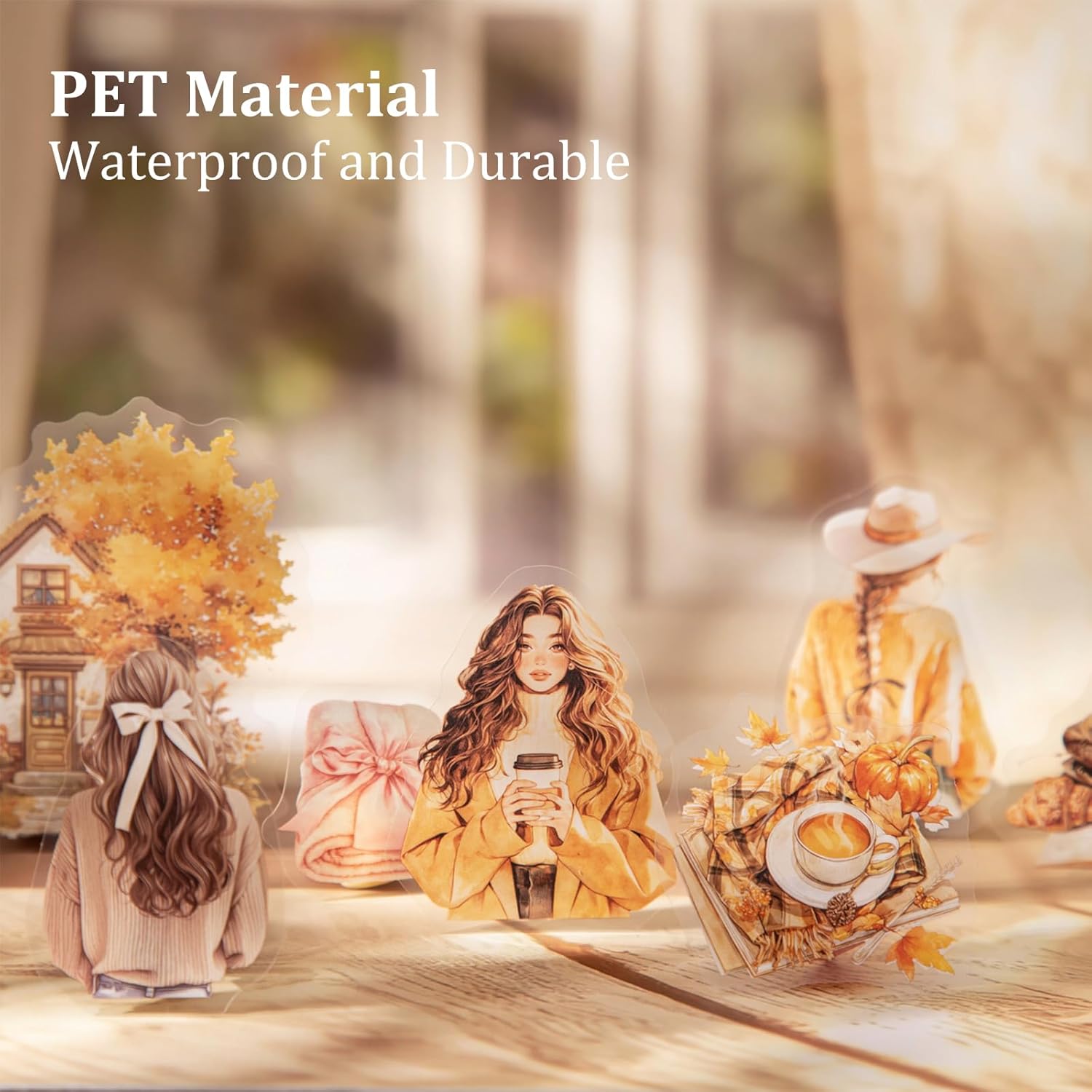 - Warm Daily Life Designs: This set includes 6 styles and 120 PET stickers in total, with each style offering 20 unique designs featuring cozy rooms, vintage girls, plants, windows, and nostalgic interiors that add warmth and charm to scrapbooks and journals