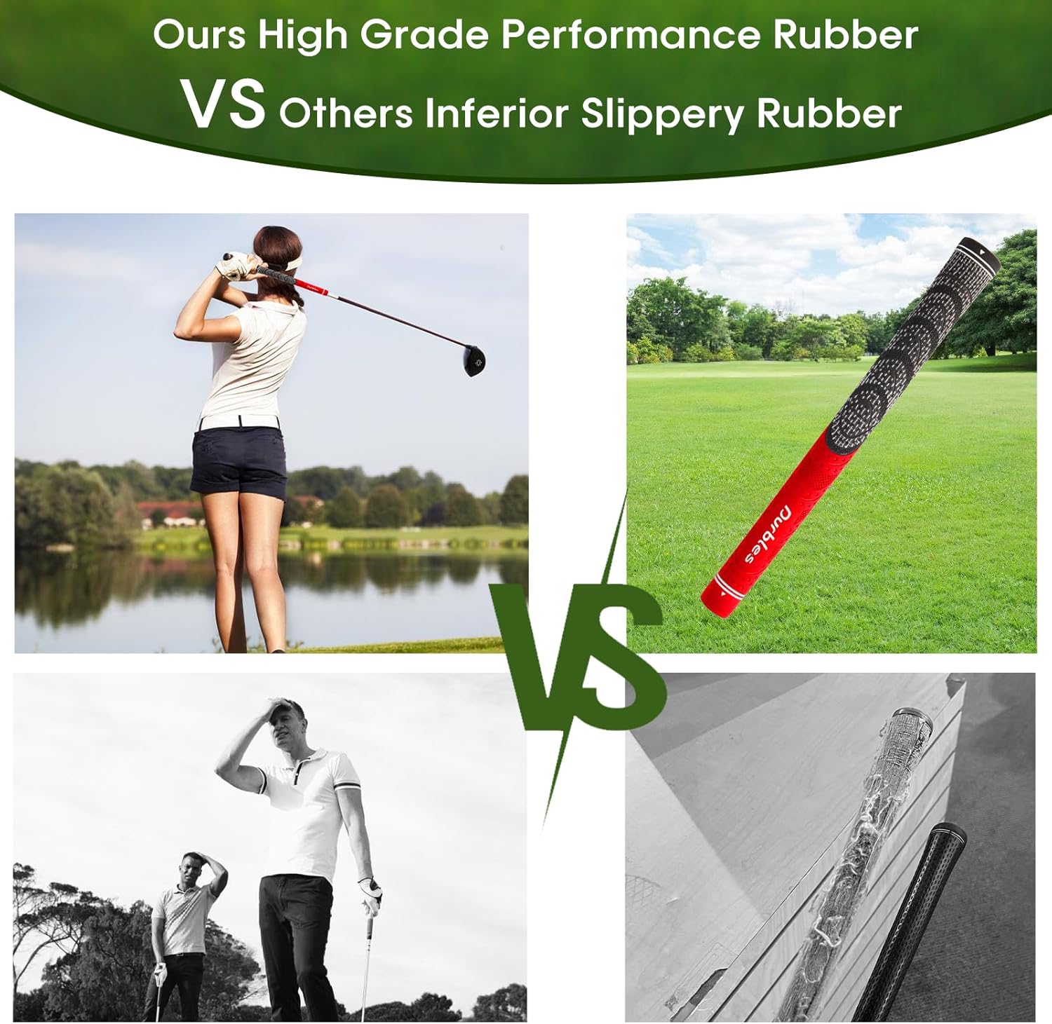 Golf Grips with Regripping Kit – All Weather Multi-Compound Golf Club Grips for Men & Women – Corded Rubber Grip Set – Standard & Midsize Wood and Iron Grip Kit – All Level Golfing Accessories