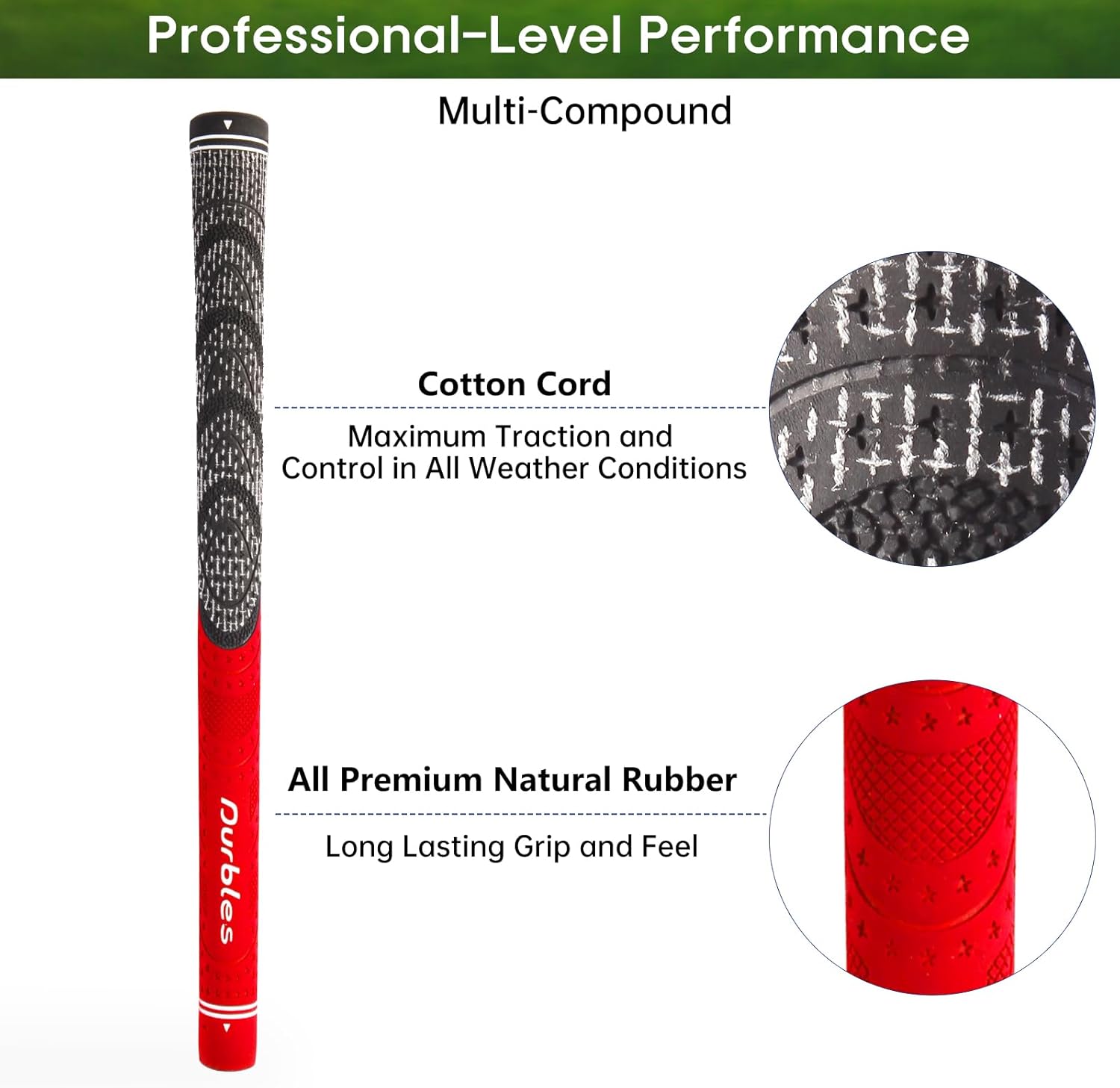 - Professional-Level Golf Grip Performance – Built with multi-compound rubber and cotton cord, our premium golf grips offer maximum traction and control in all weather conditions—no matter if you’re on the golf range or under tournament pressure.