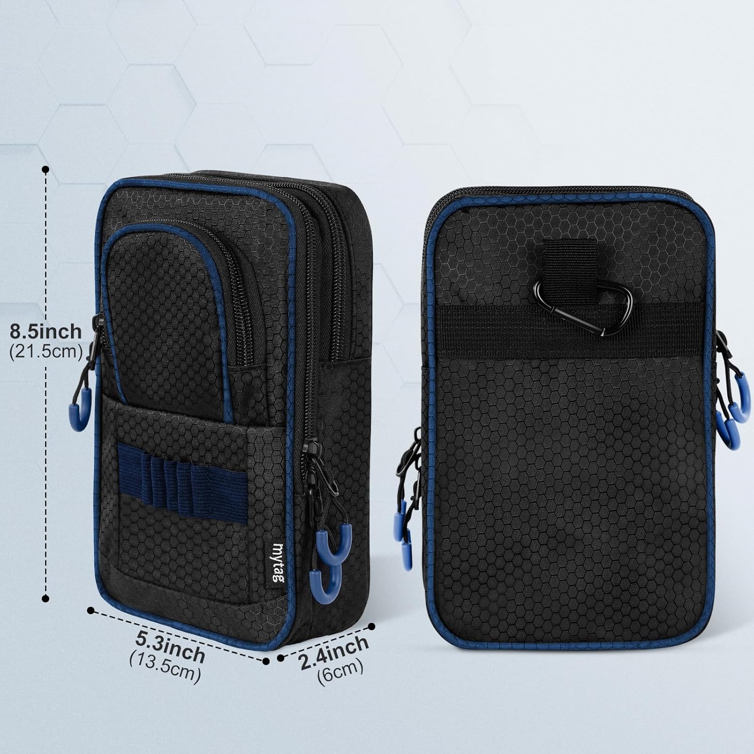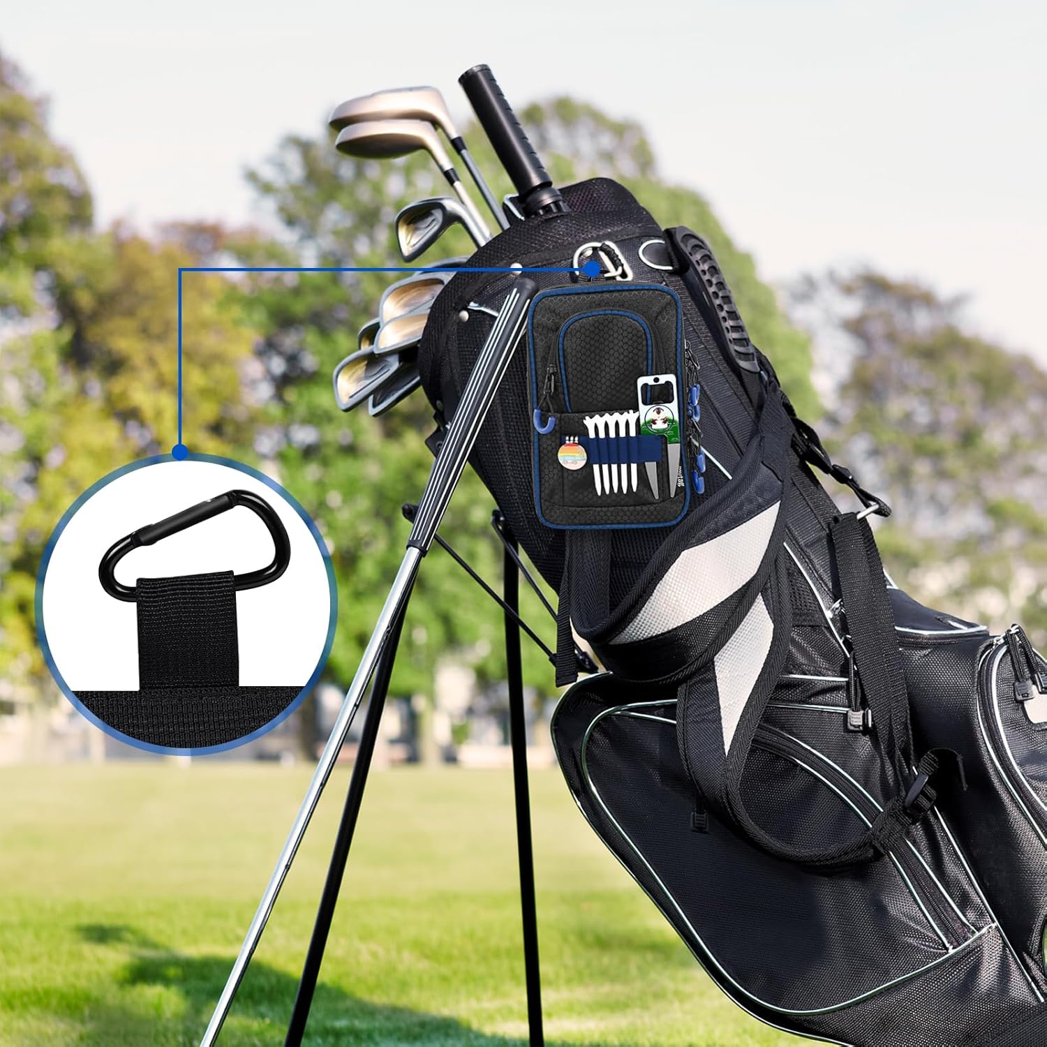 mytag Golf Ball Bag Pouch | Store 12-15 Balls, Golf Valuables Pouch Portable Outfit Organizer Bag Organizer Case Multipocket (Blue/Black)