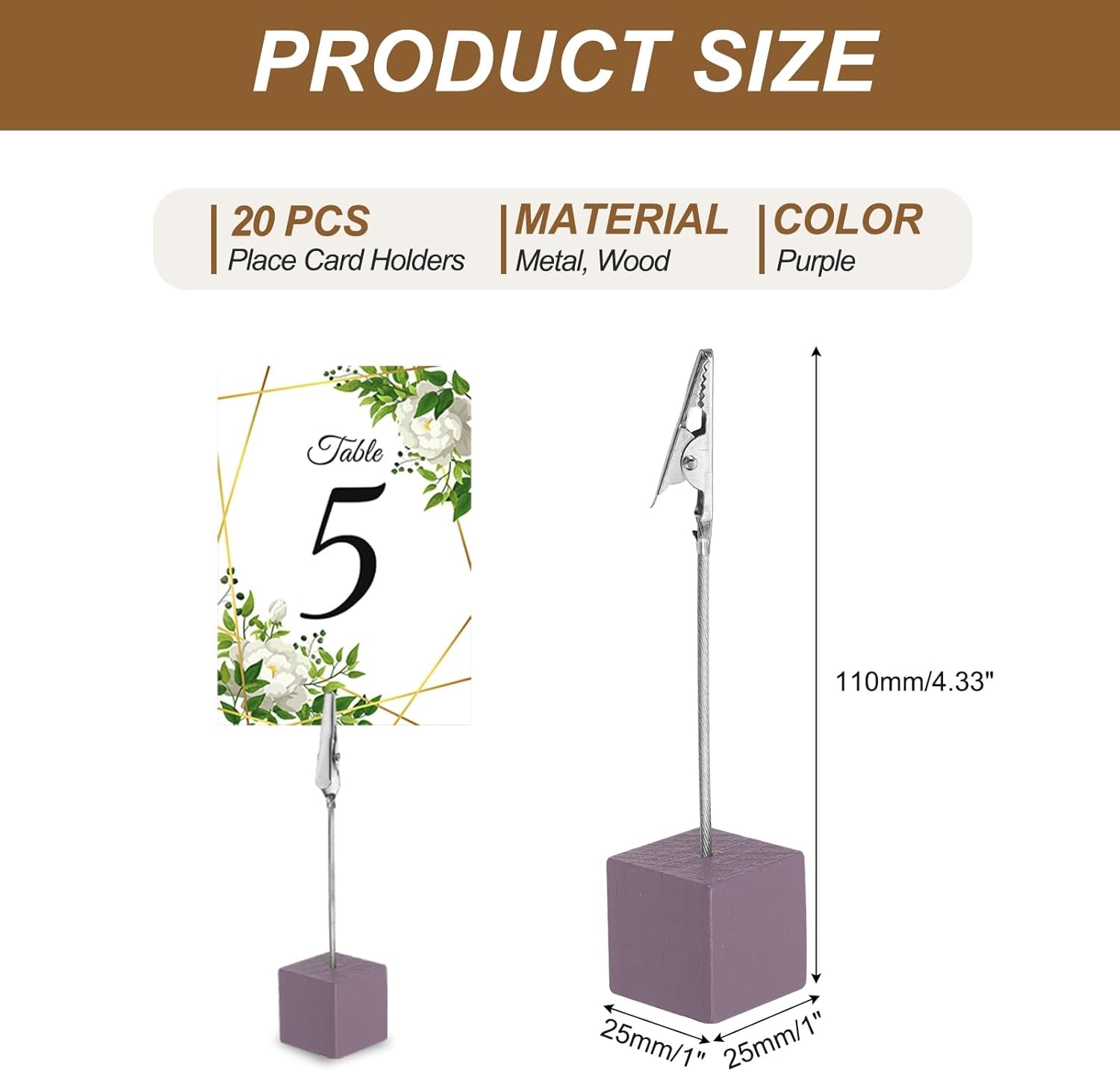 - Color: Purple; Material: Metal, Wood; Wire Thickness: 2mm / 0.08 inch; Overall Size: 25 x 25 x 110mm / 0.98 x 0.98 x 4.33 inch(L*W*H); Packing List: 20 x Place Card Holders for Table