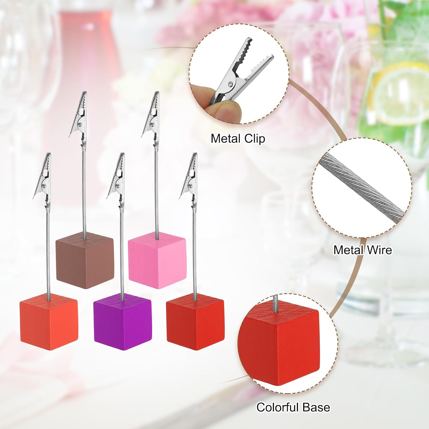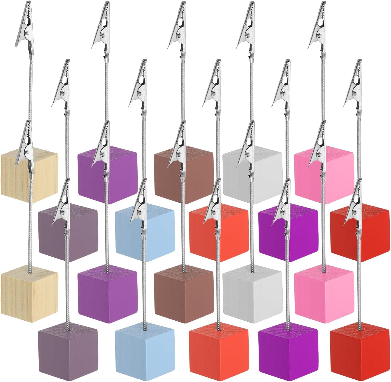 PATIKIL Place Card Holder, 20Pcs Memo Clip Holder Stand with Alligator Clasp Table Number Holders Wooden Base for Pictures Note Card Paper, Multicolored