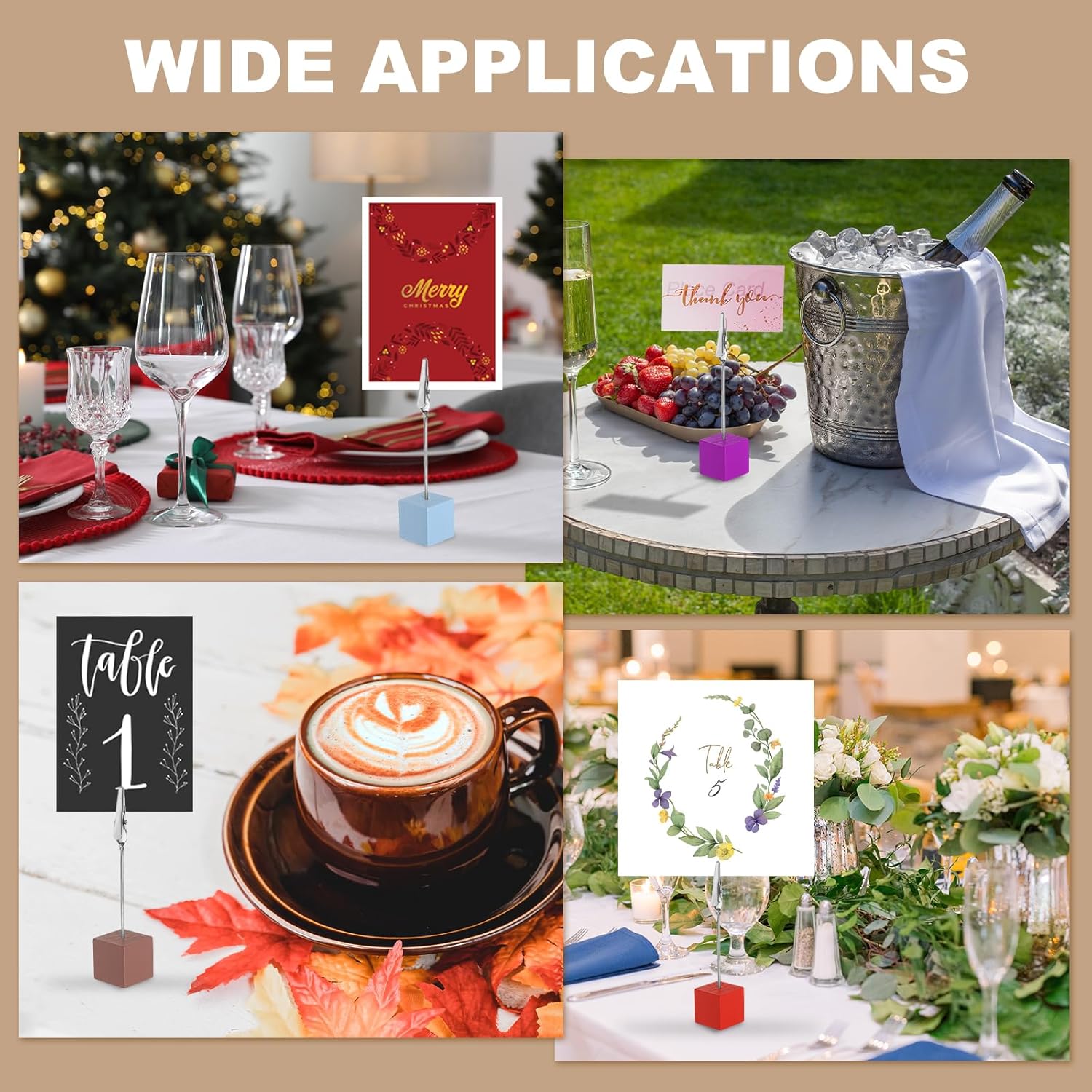 - Application: Our table card holder is great for holding place cards, photos, memos, notes, and other important reminders. It's a good accessory for weddings, parties, conferences, or any other event where you need to display important information. These table place card holders can also be used as table number holders, menu card holders, or for displaying photos.