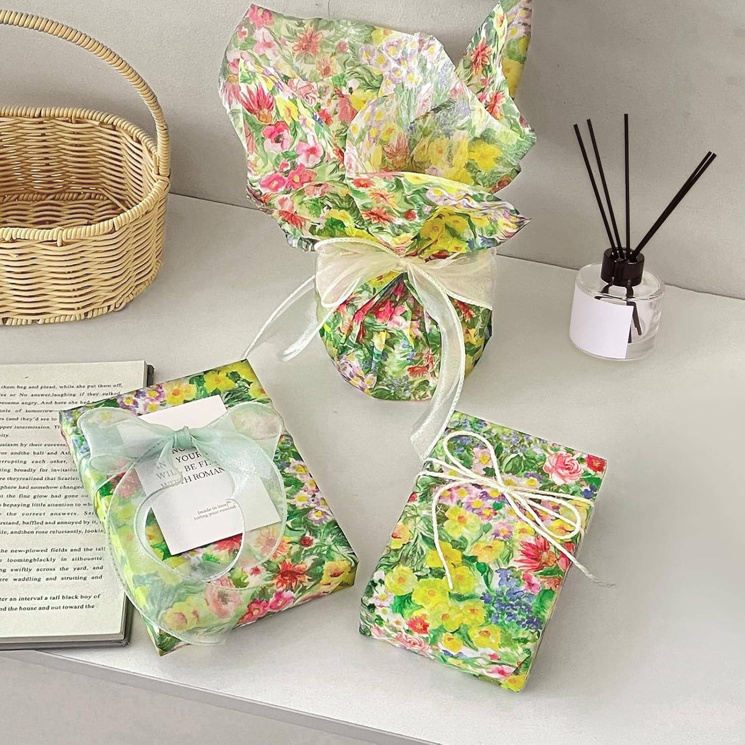 - Elegant Oil-Painted Floral Design:Vintage tissue paper featuring stunning oil painting-style spring wildflowers and flowers.Delivers vibrant artistic flair to weddings, birthdays, baby showers, and spring celebrations.