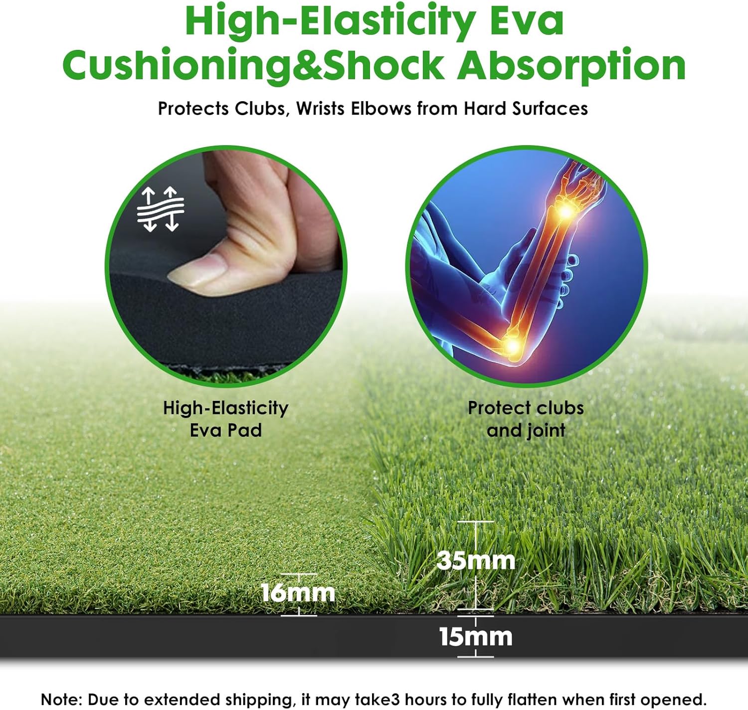 - COMFORTABLE AND SAFE: Our golf practice mats feature a robust 15mm high elasticity EVA rubber non-slip base, providing maximum stability on any surface, indoors or outdoors, and protecting your joints and muscles