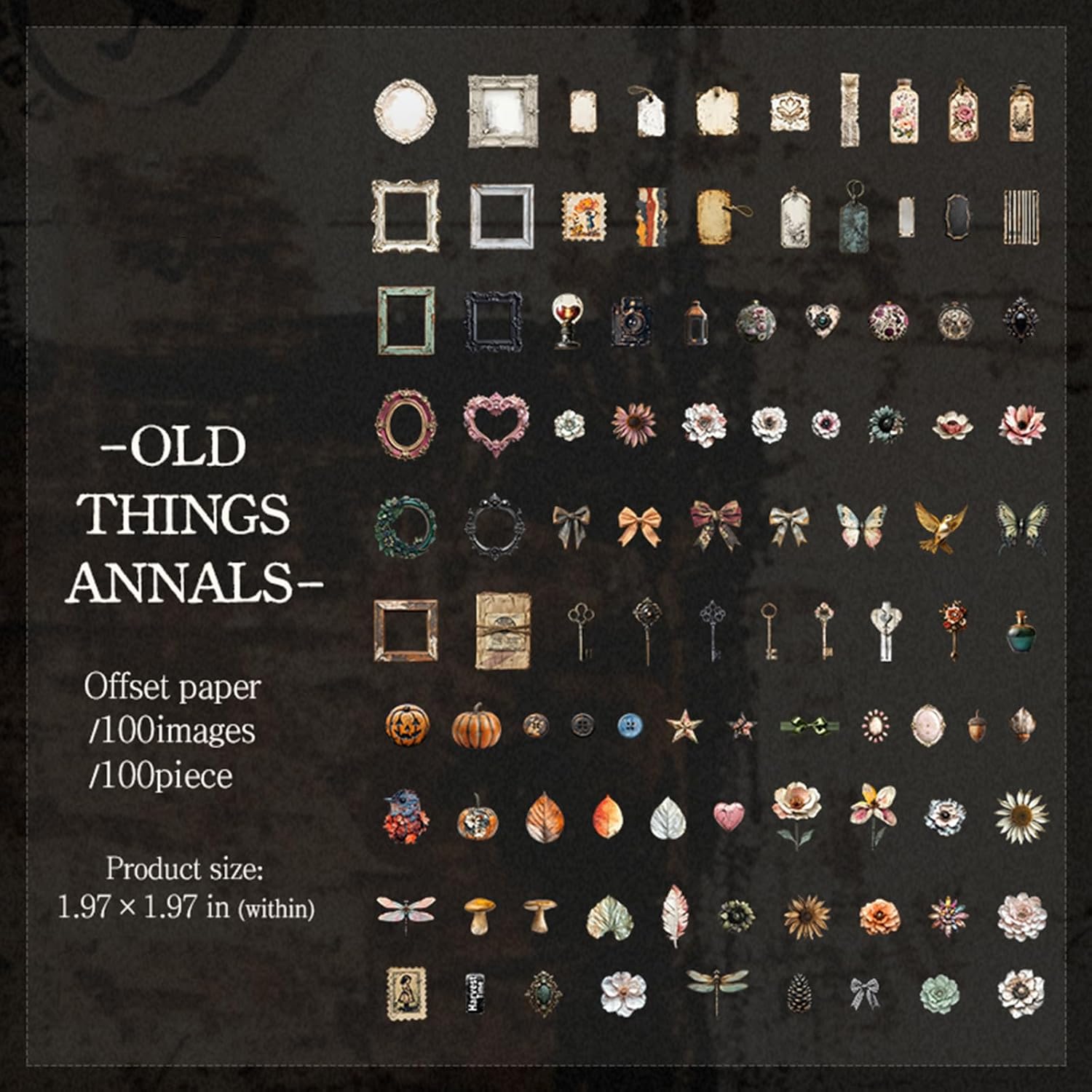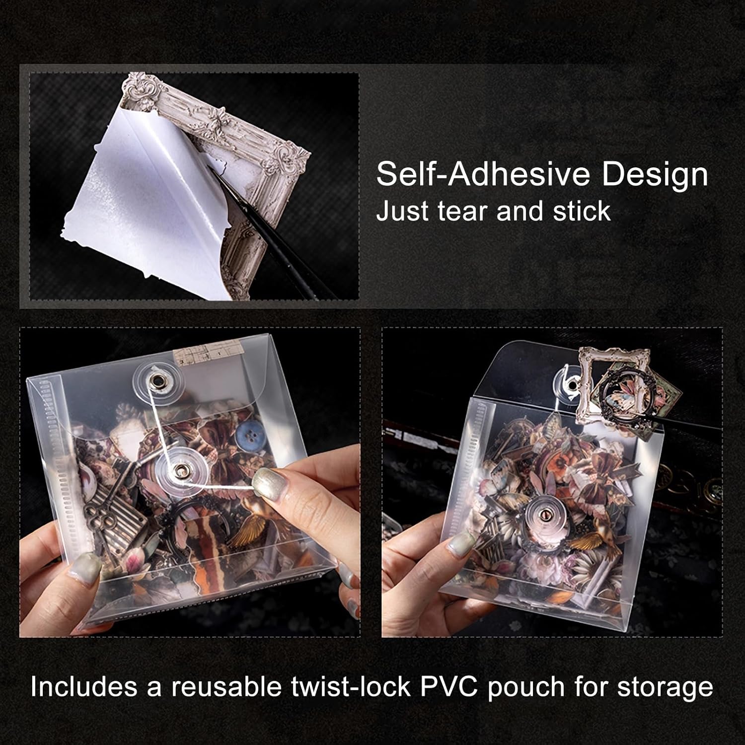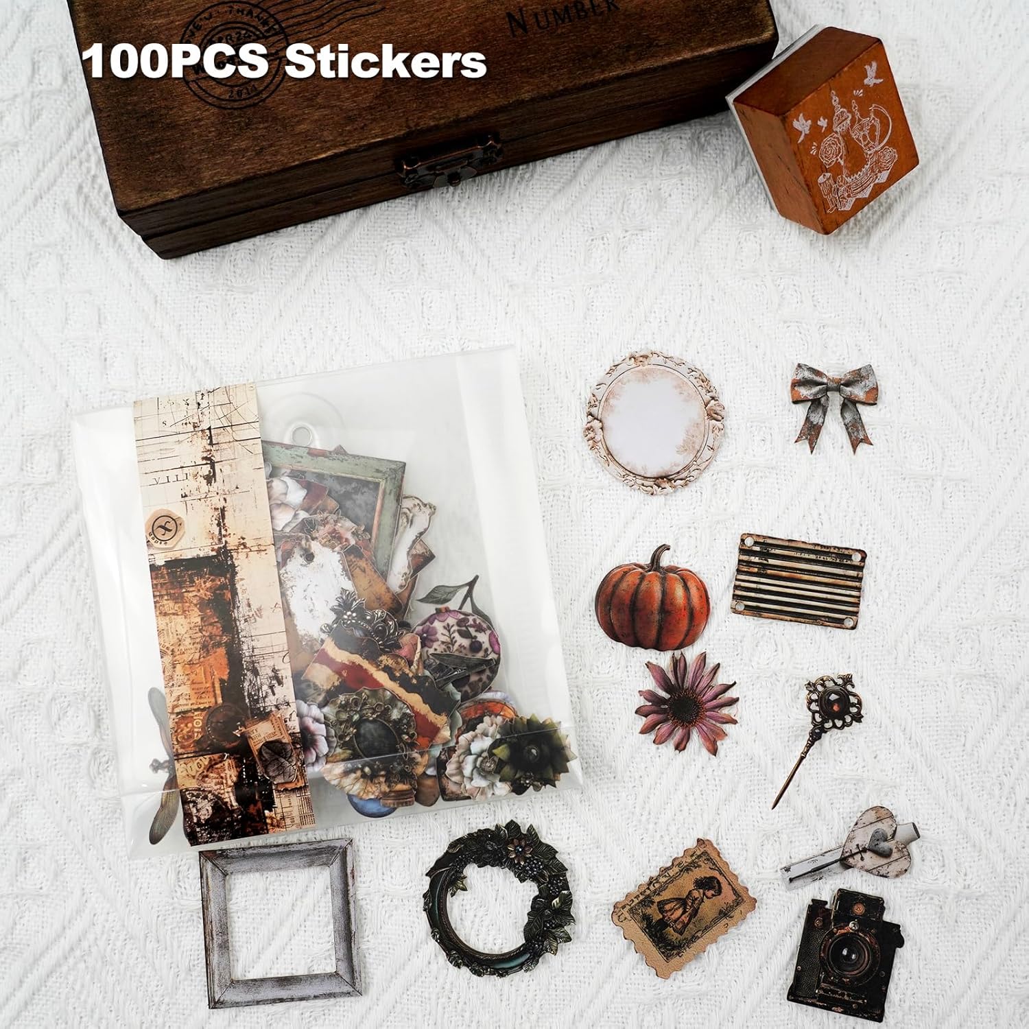 - Rich Vintage Aesthetic: Includes 100 unique retro-style stickers like florals, butterflies, antique frames and labels to add layers of charm and nostalgic storytelling to your scrapbook and journal pages
