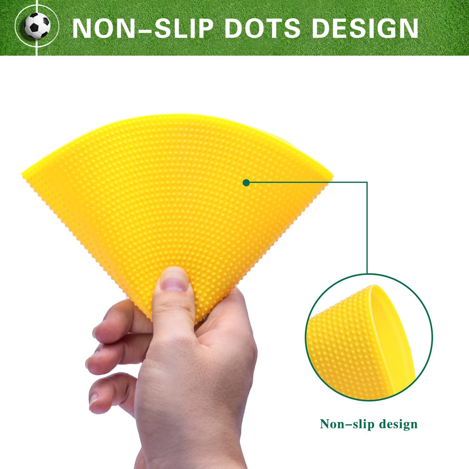 - 【NON-SLIP DOTS ON THE BACK】They resist sliding across gym floors or pavement when stepped on or run over during activities, making them safe for use during fast-paced games and drills or for social distancing.