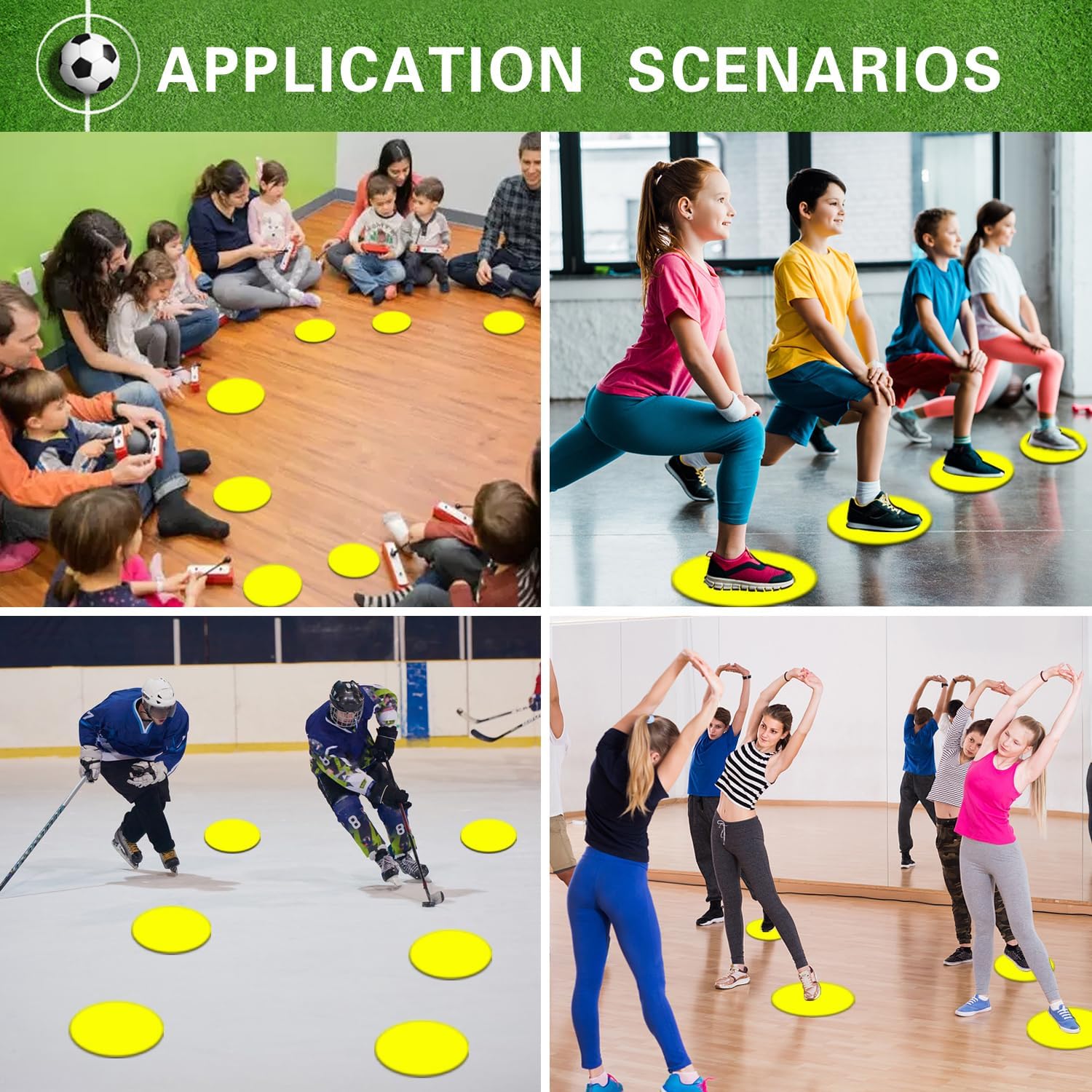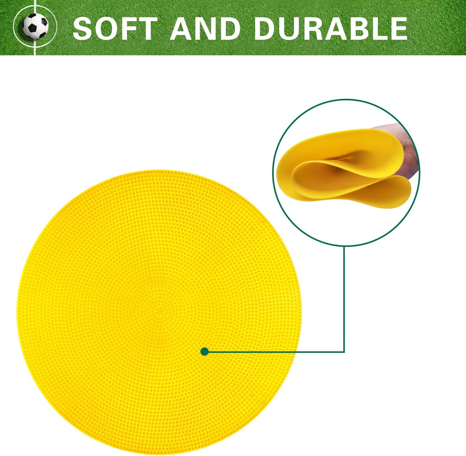 - 【BRIGHT, VIBRANT COLORS】 Package includes set of 12 round markers in bright Yellow, The agility dots is exactly designed for optimal visibility. They're easy to see during games and drills when training or practicing sports. Useful for physical distancing measures too.