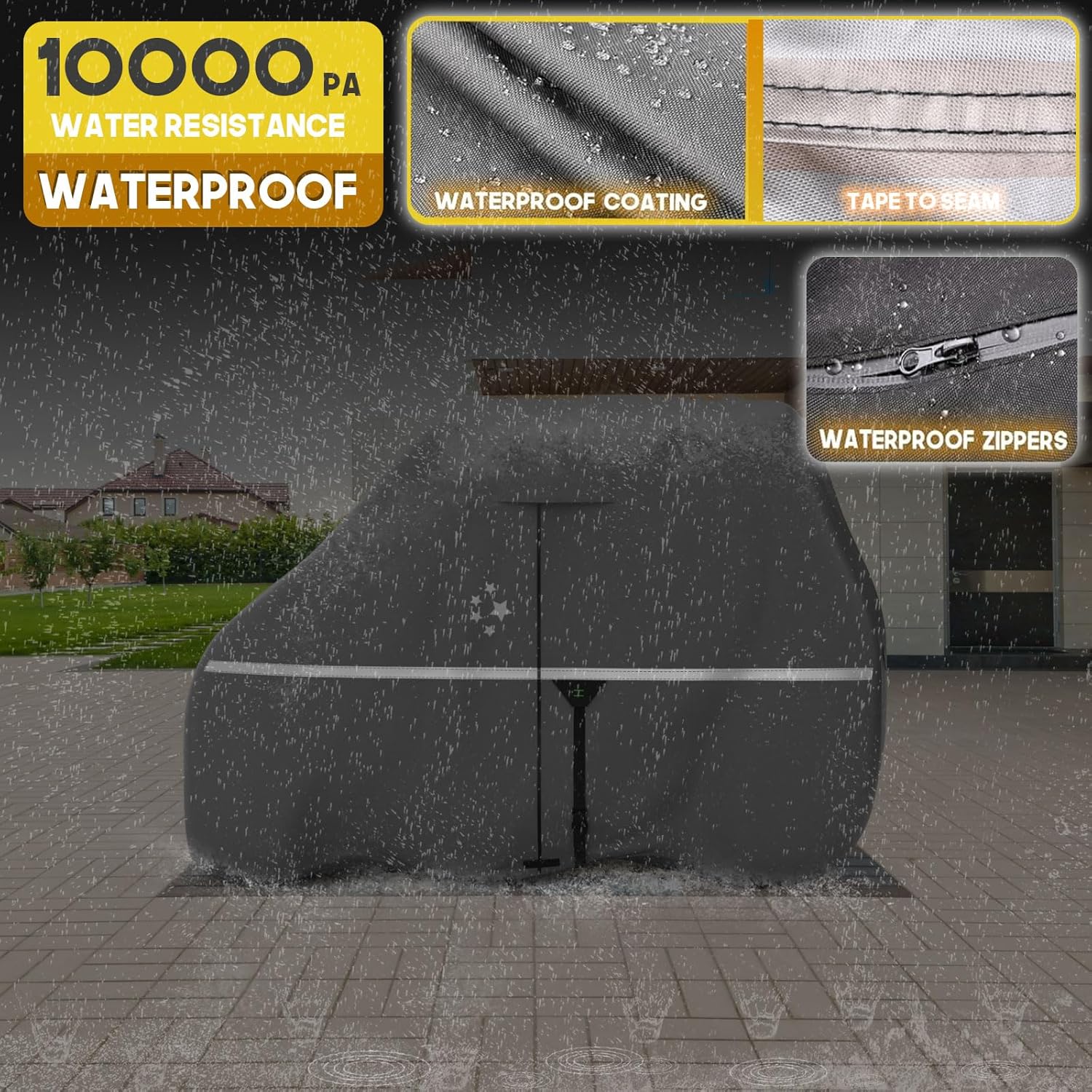 - Waterproof Upgrade: ①The fabric has undergone waterproof treatment, and its water pressure resistance is 10000PA! ② The seam has undergone waterproof glue pressing treatment. ③ The zipper adopts waterproof zipper. It fears no rainstorm!