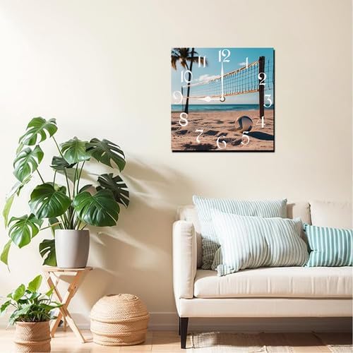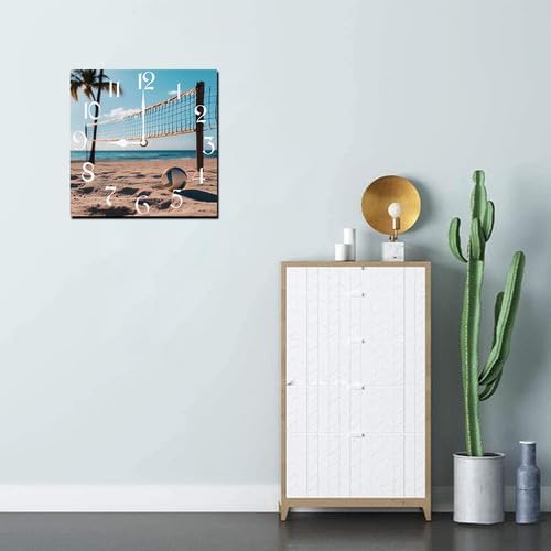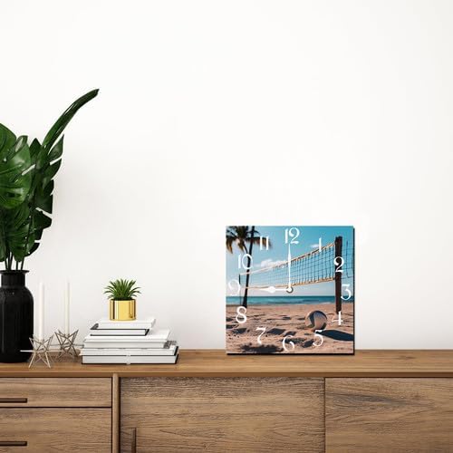 Volleyball Square Clock Silent No Ti.ck Battery Powered Home Decor 10inch Wooden Wall Clock for Living Room Kitchen Bathroom Farmhouse